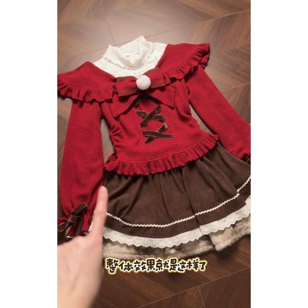心有千千结 秋冬新款日系圣诞氛围感战袍古早蝴蝶结上衣半裙套装