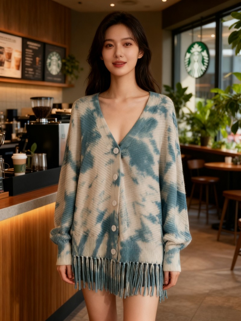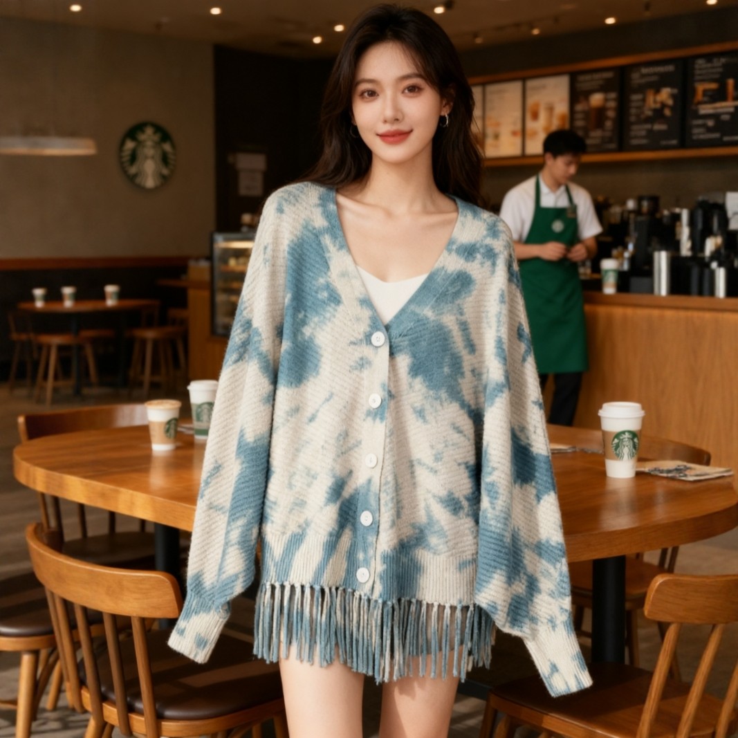 首页> 女装> 扎染针织流苏开衫女秋季新款百搭慵懒风外搭长袖蝙蝠衫毛衣外套女