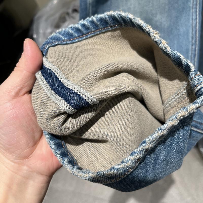 欧洲站2025冬季新款时尚高腰纯色直筒加绒牛仔裤女款欧货23287