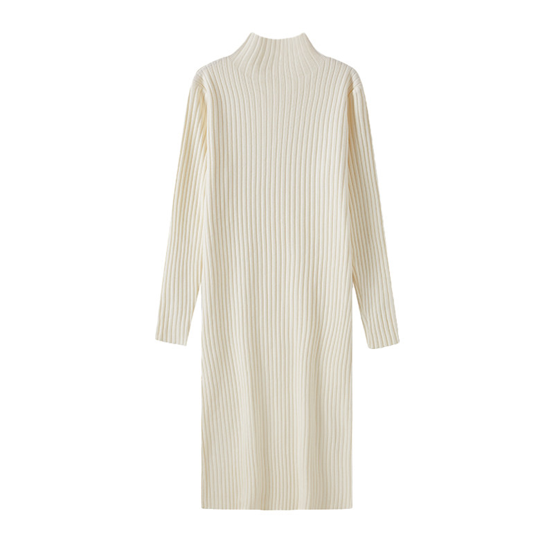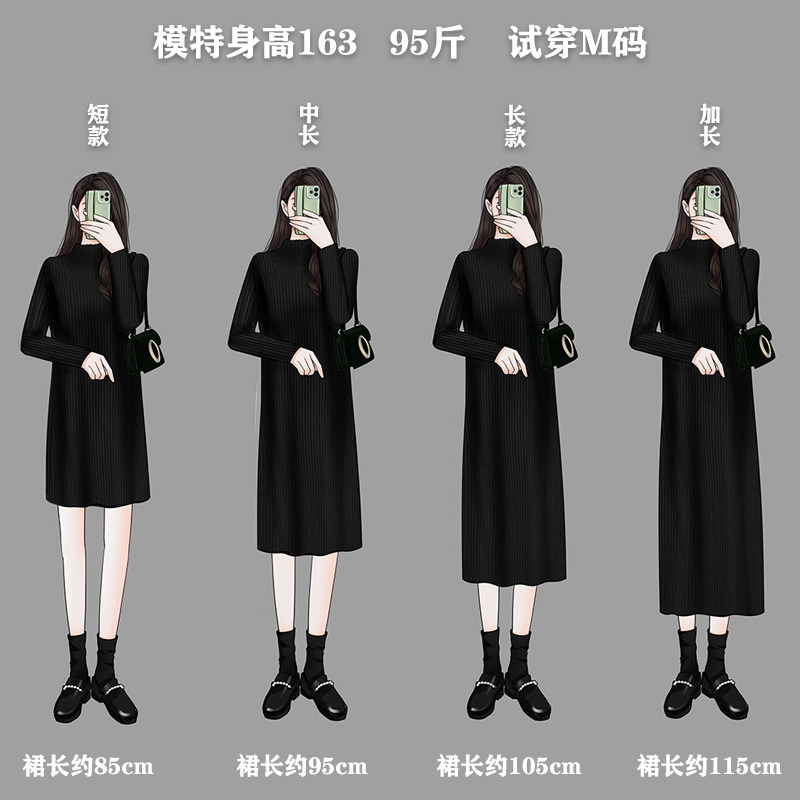 秋冬配大衣毛衣裙女半高领宽松长袖内搭中长款打底过膝针织连衣裙