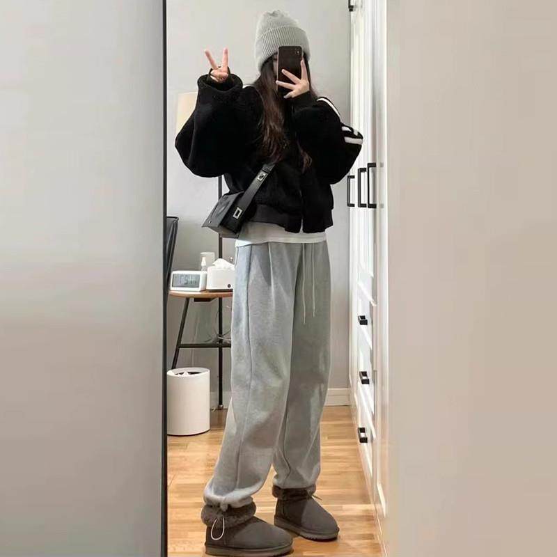 羊羔绒东北厚棉裤超厚运动裤女加绒卫裤秋冬季休闲裤直筒裤子女款