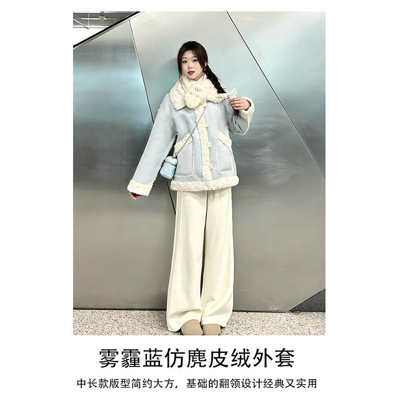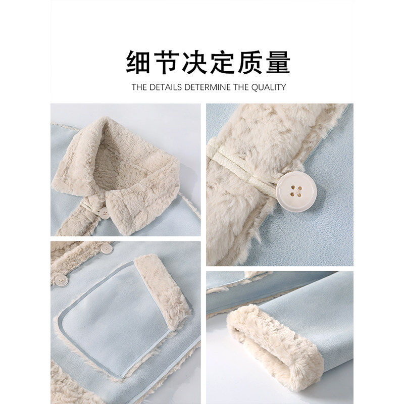 蓝色皮毛一体外套女秋冬季韩系冬装巨好看初冬加绒厚棉服冬天穿搭