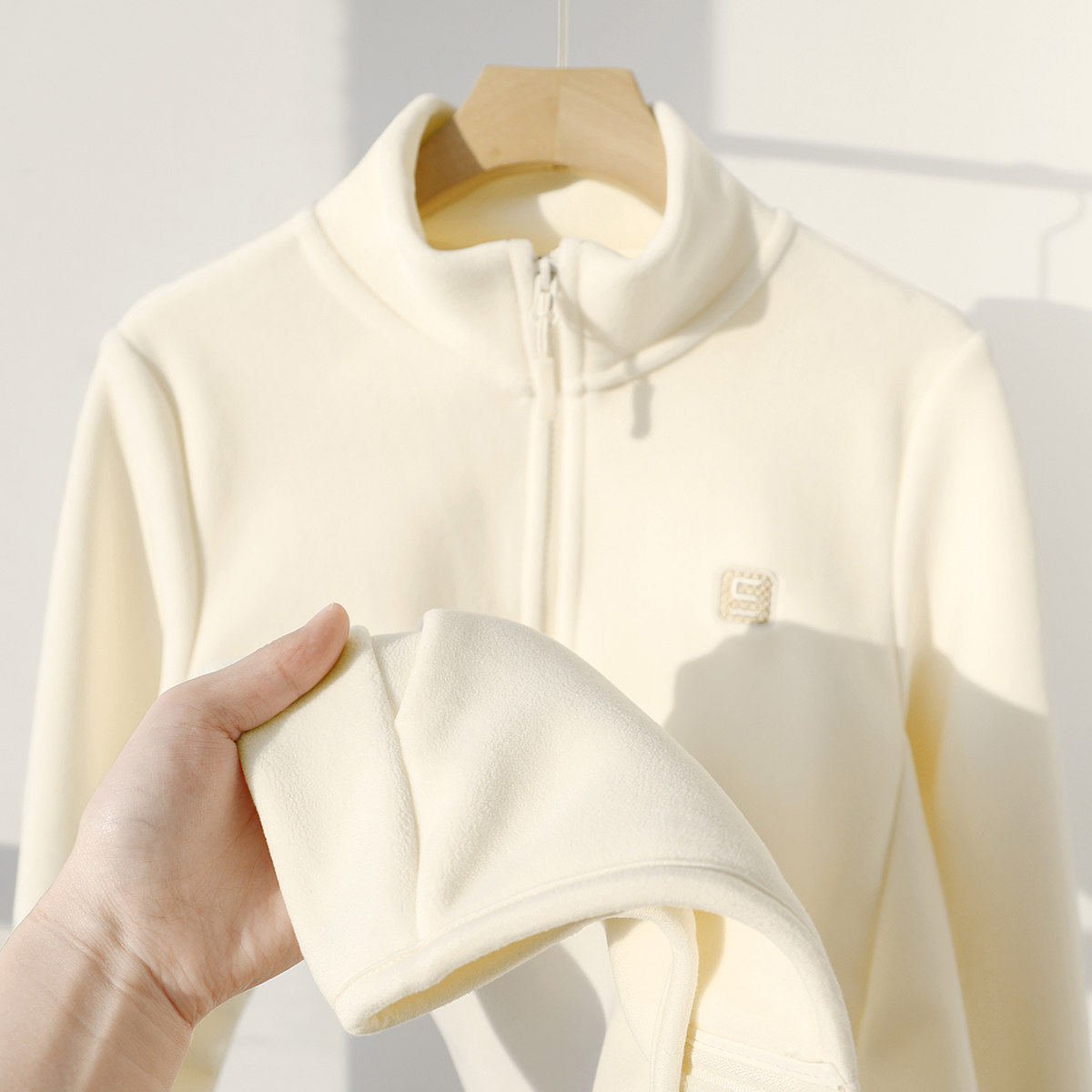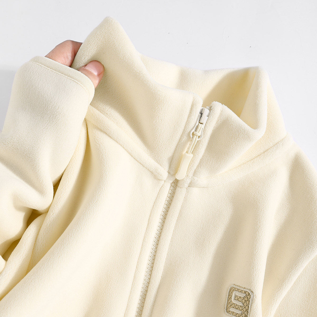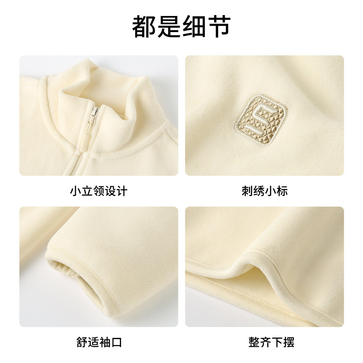 奶油系穿搭!温柔米白色双面奥粒绒立领卫衣外套女保暖冲锋衣内搭