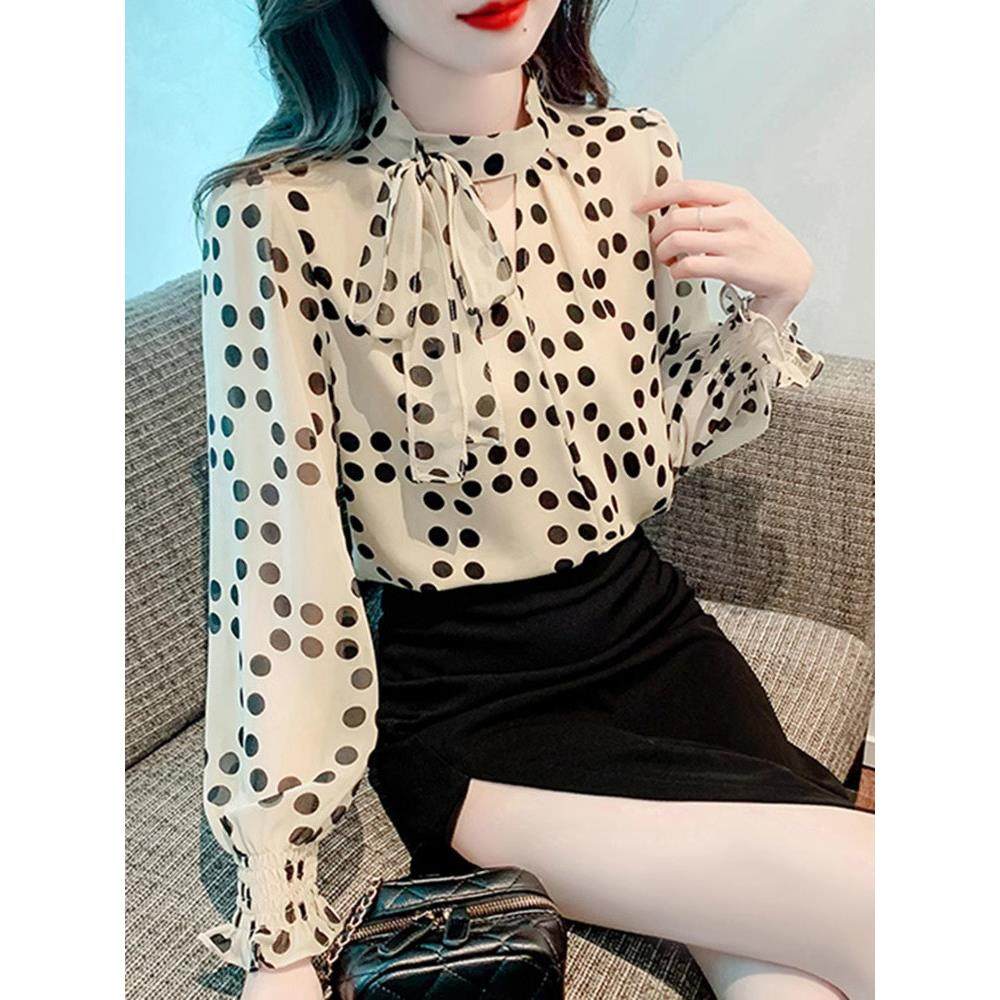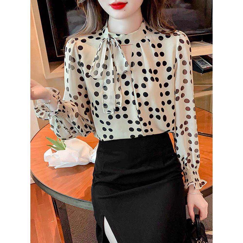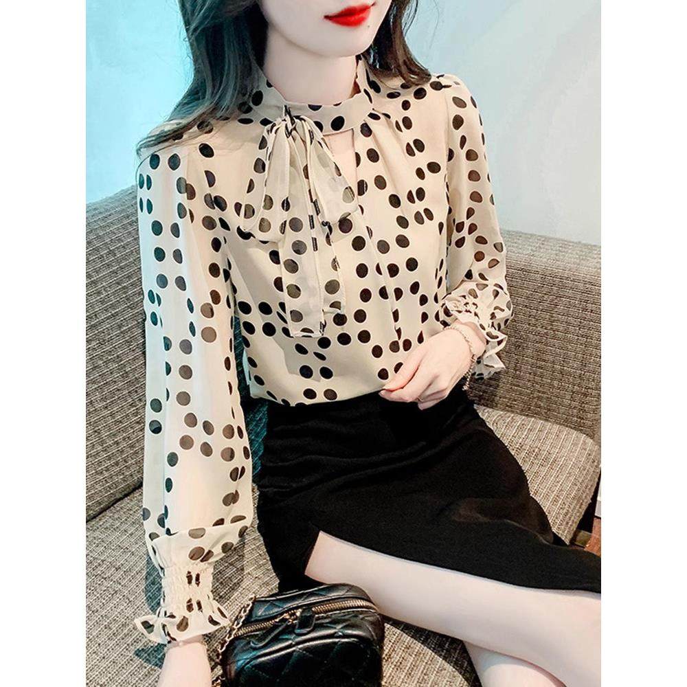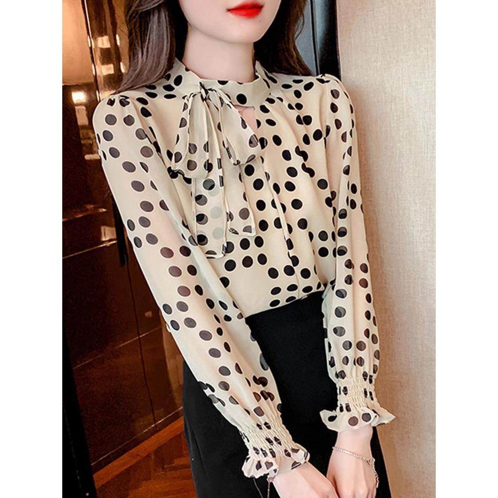 首页> 女装> 雪纺衬衫女长袖春秋季2025新款法式设计感小众波点衬衣蝴蝶结上衣