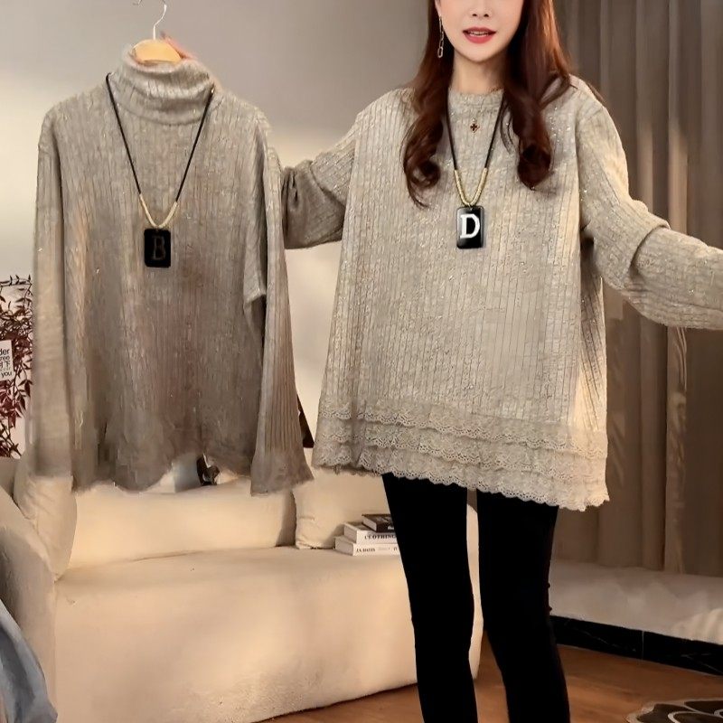 大码女装白色蕾丝加绒加厚打底衫上衣秋冬中长款磨毛保暖内搭卫衣