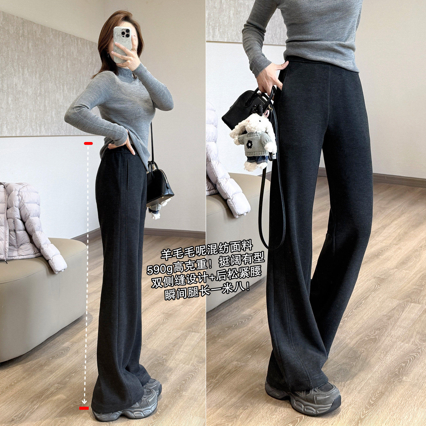 靓小靓秋冬大长腿【微喇报恩裤】极简休闲气质羊毛长裤显瘦休闲裤