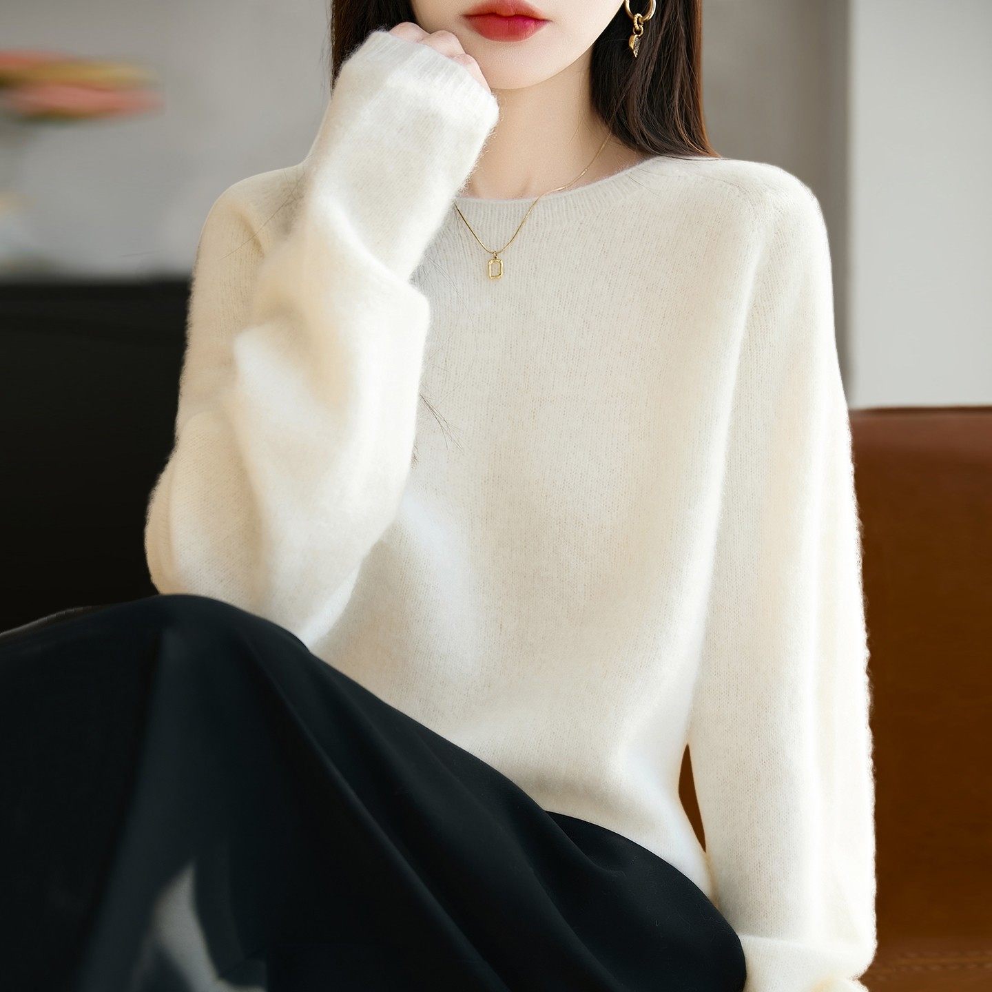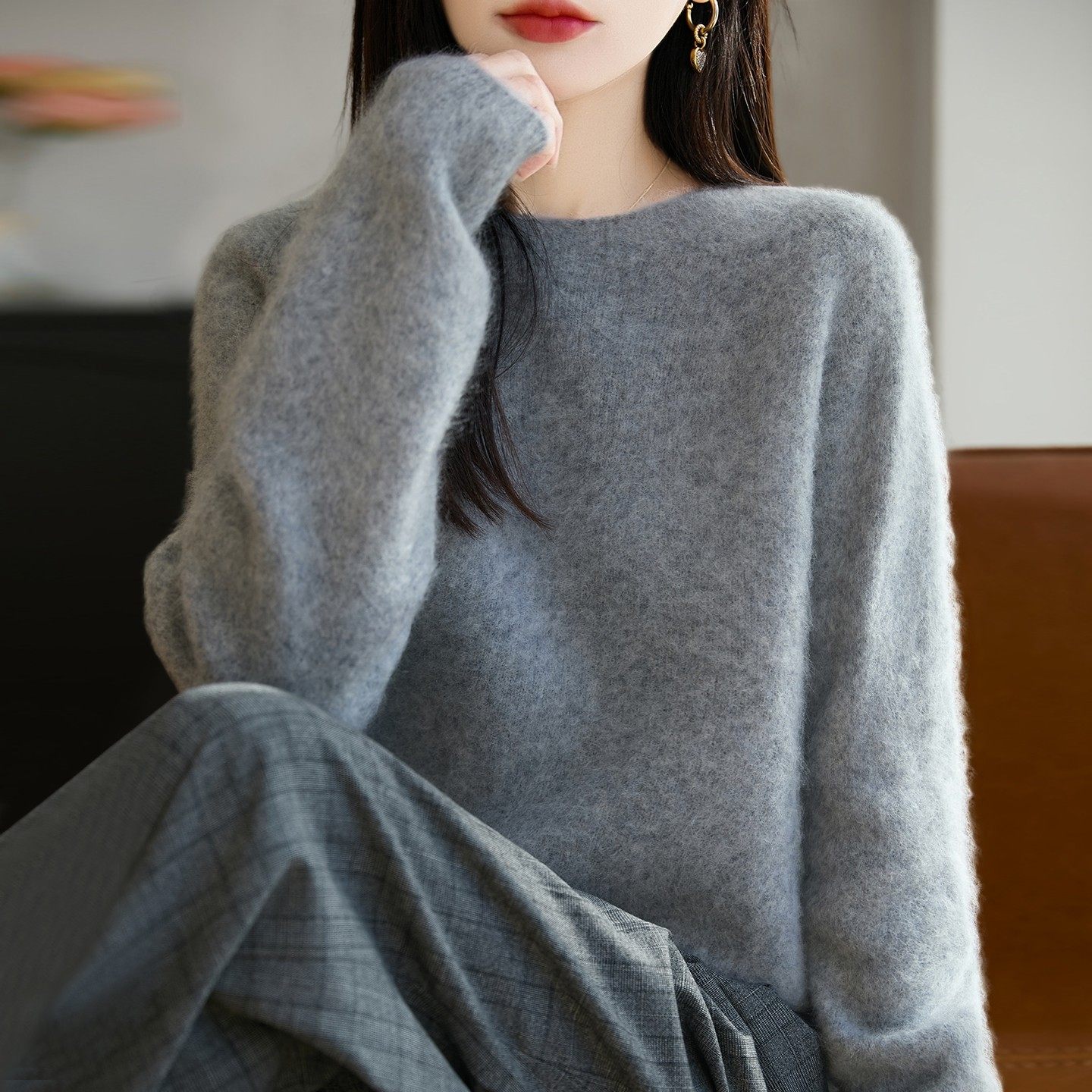 100纯羊毛拉毛针织打底衫女2025新款洋气大码女装上衣秋冬毛衣