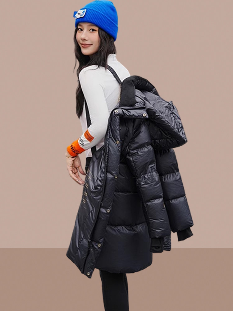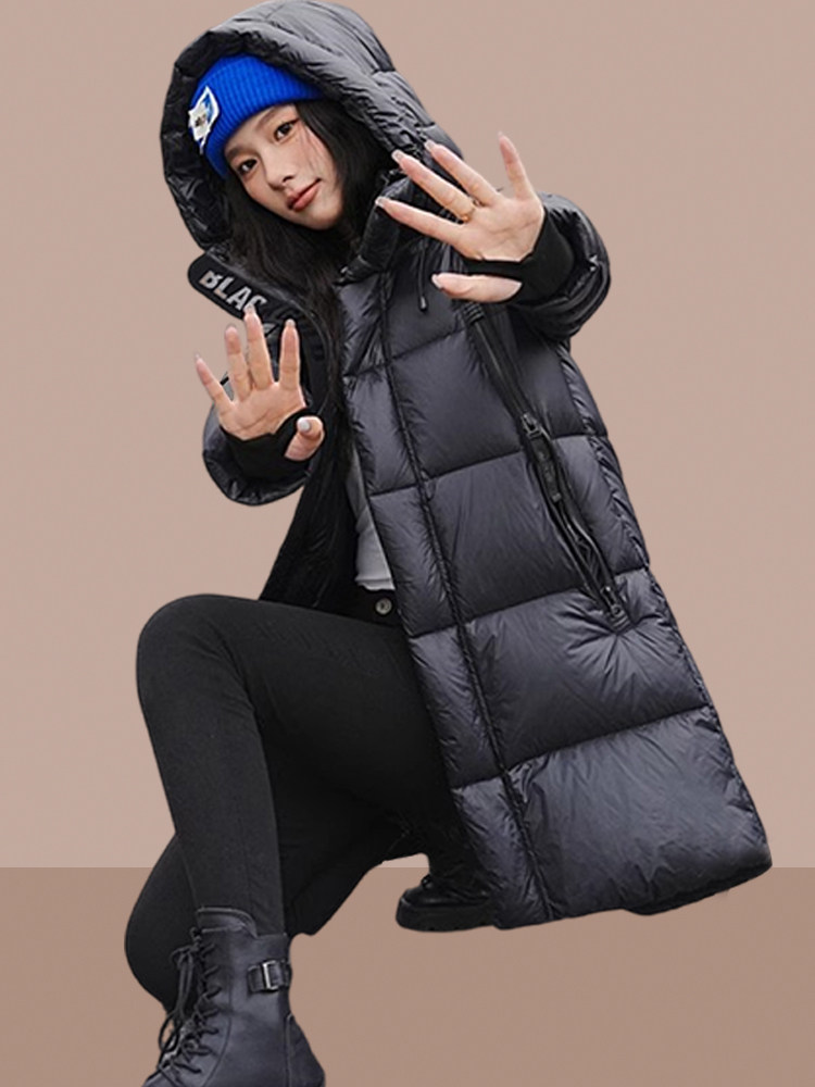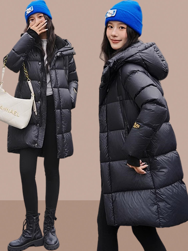 BLACKGOLD黑金鹅绒冬季新款男女同款羽绒服女中长款加厚连帽外套