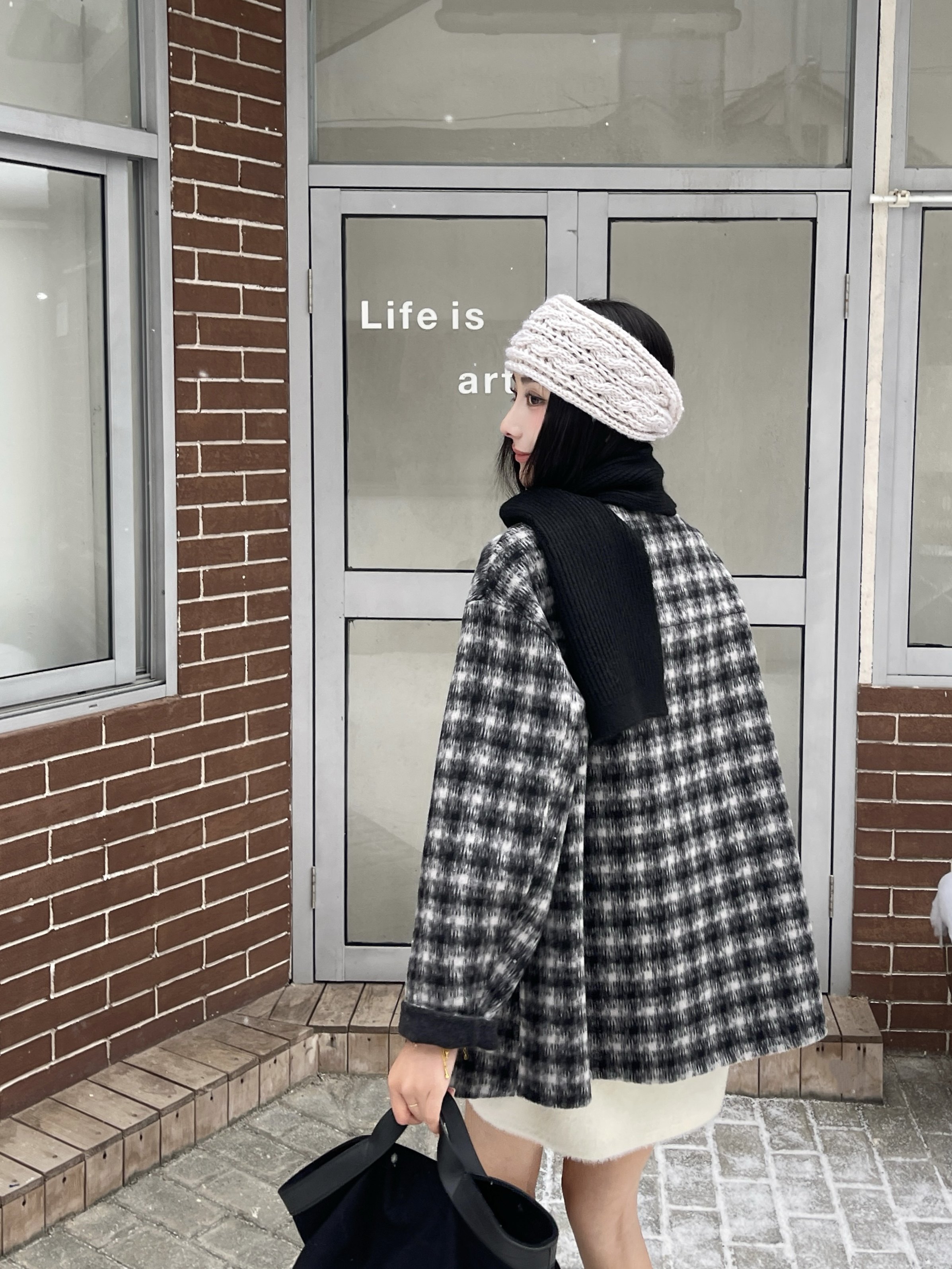 欧货围巾格子羊毛呢外套女2025冬季新款时尚宽松中长款毛呢大衣潮