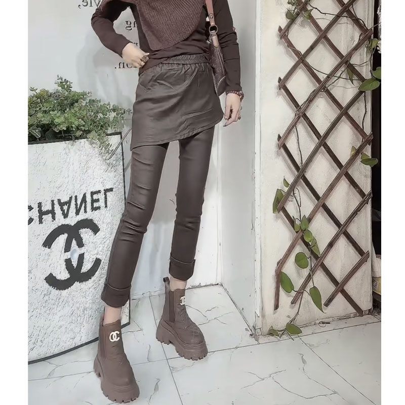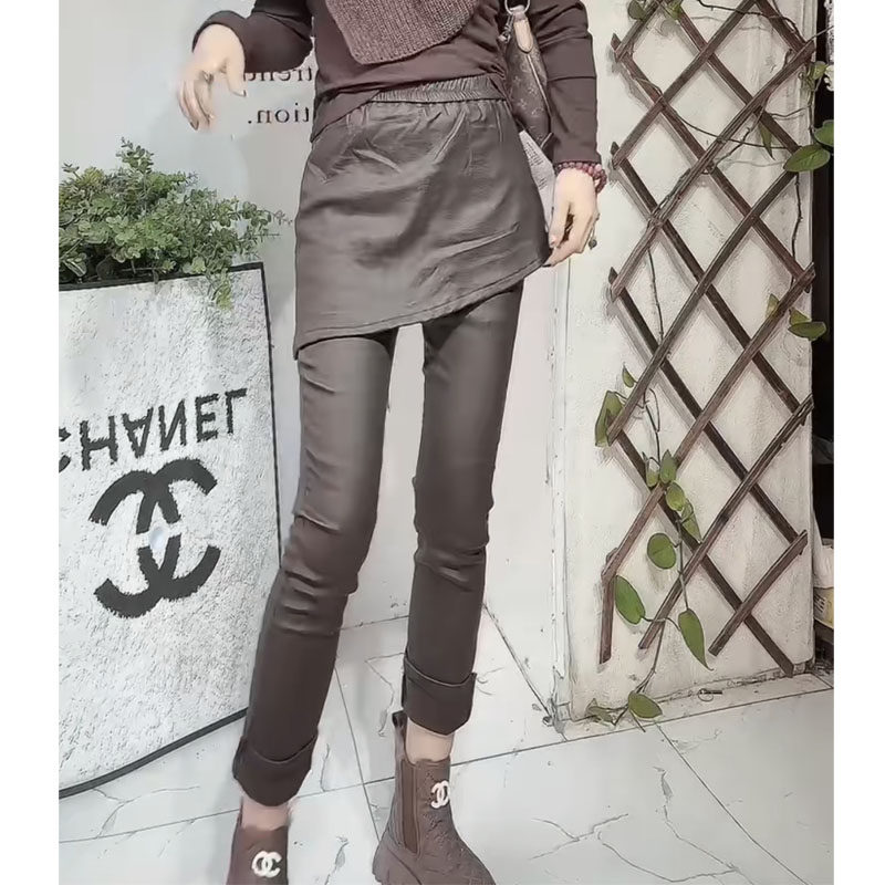 2025年秋冬新款假两件休闲涂层裤女欧货洋气显瘦弹力围裙小脚裤子