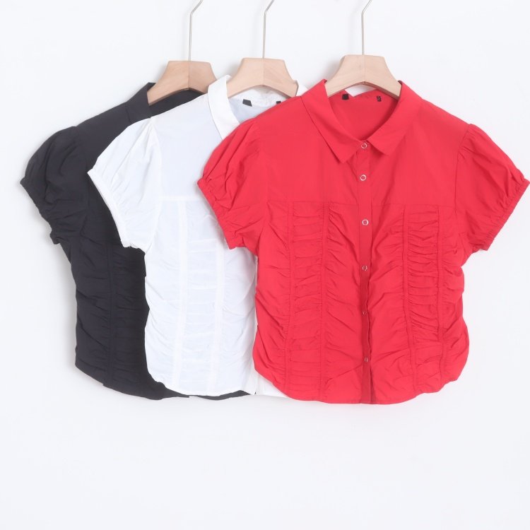 首页> 女装> D16034日单HE客供料按扣微宽松显瘦设计款女甜美纯色气质短袖衬衫