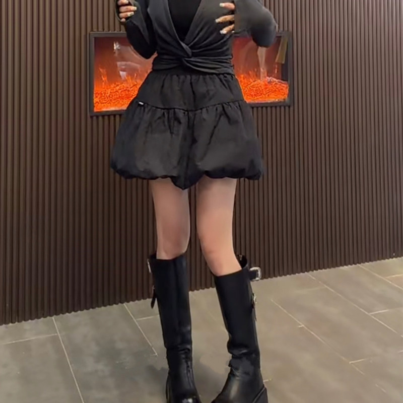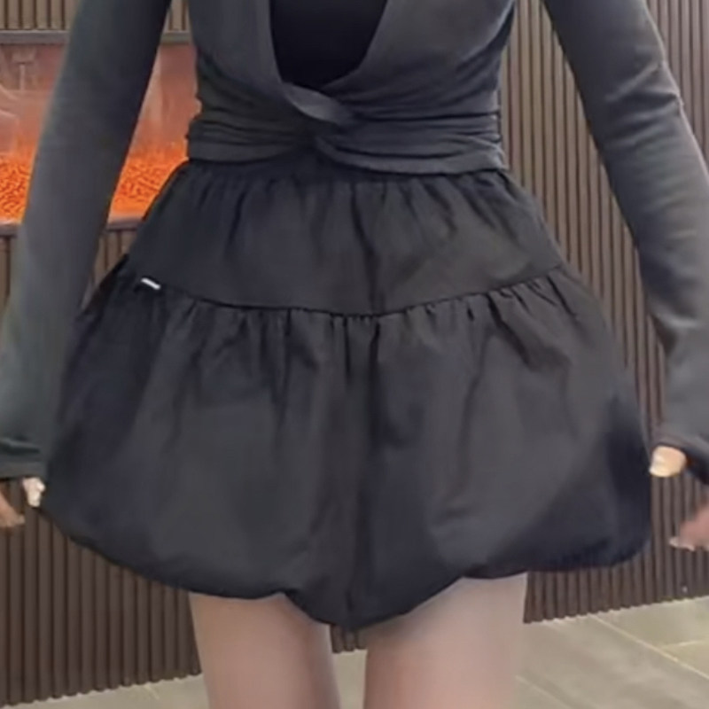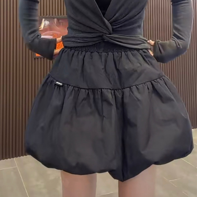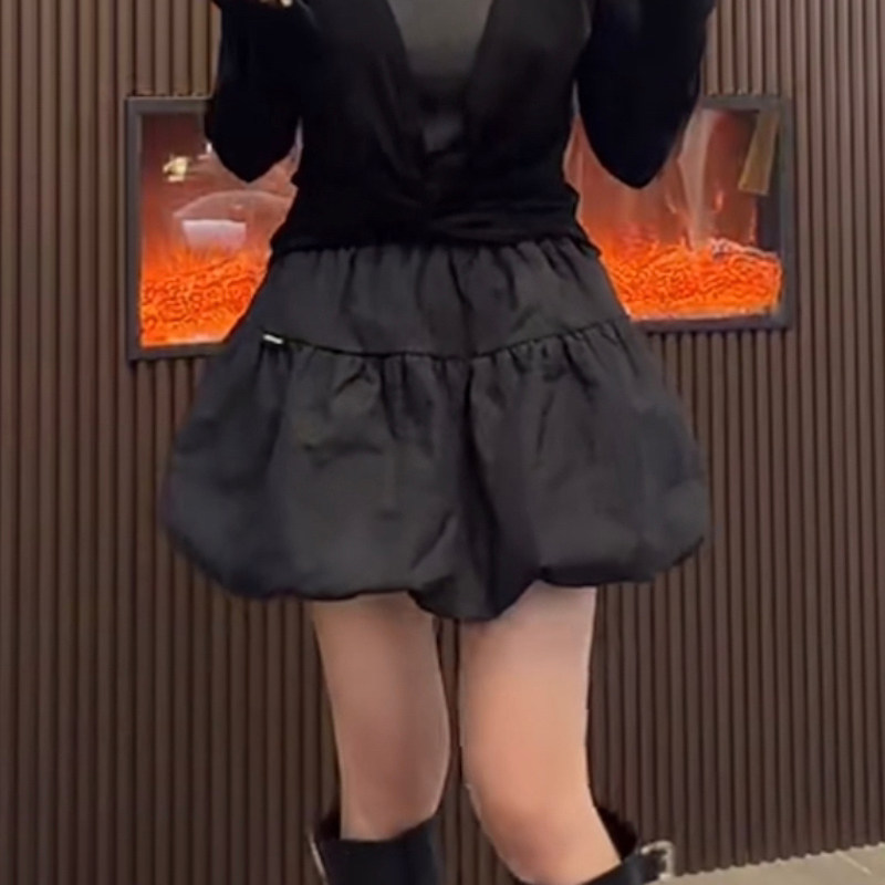 2026年春季新款黑色高腰花苞蓬蓬半身裙显瘦A字短裙小个子蛋糕裙