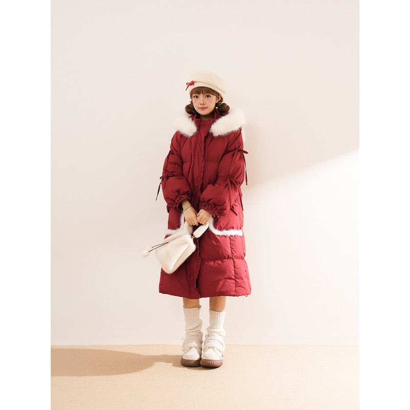 【暖腹猫咪】可爱狐狸耳连帽外套女秋冬季新款甜美设计感长款棉服