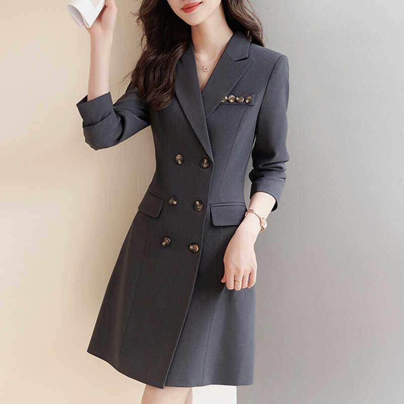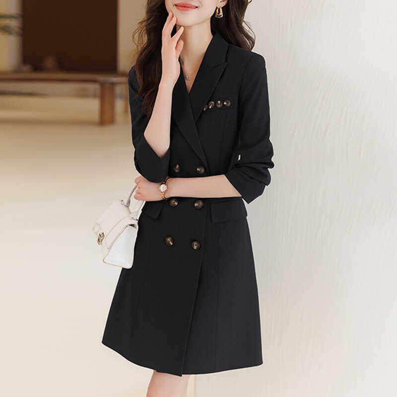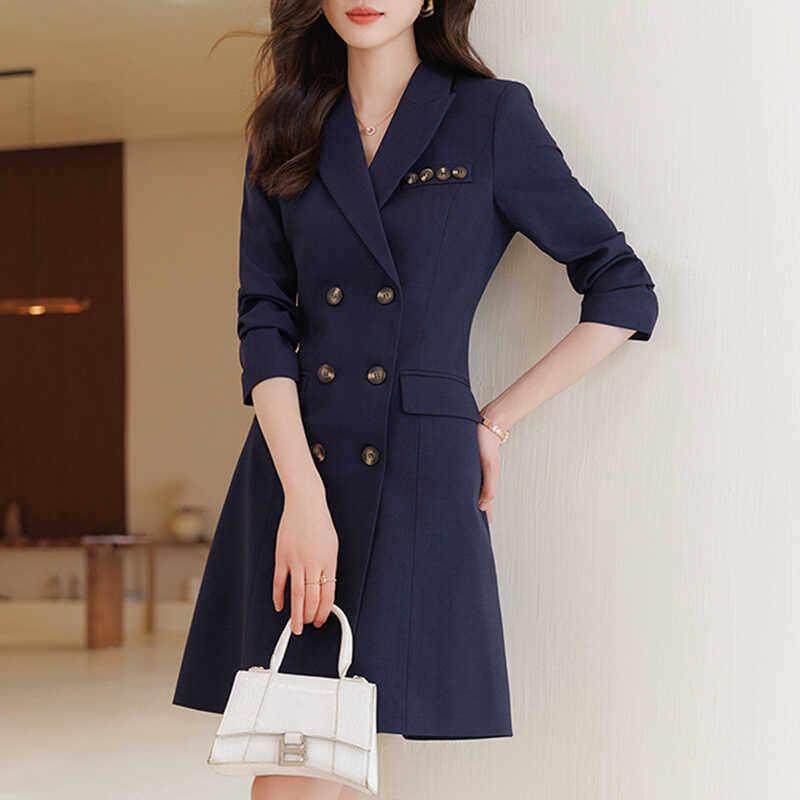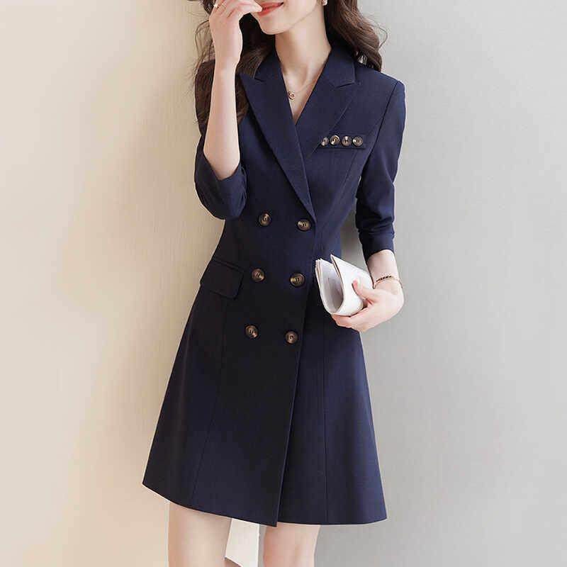 首页> 女装> 香港大码高级感长袖西装连衣裙2025春秋新款御姐通勤职业中长裙子