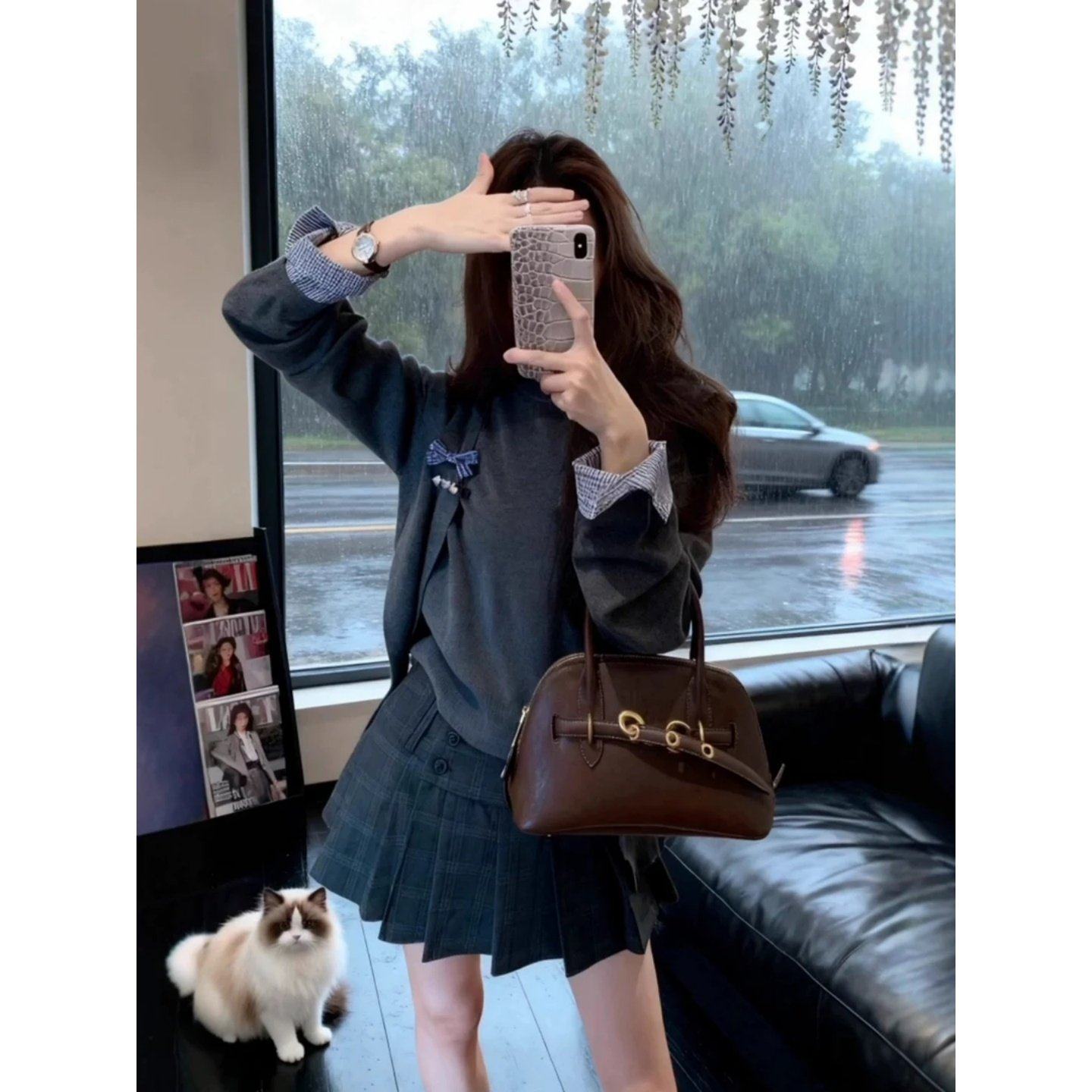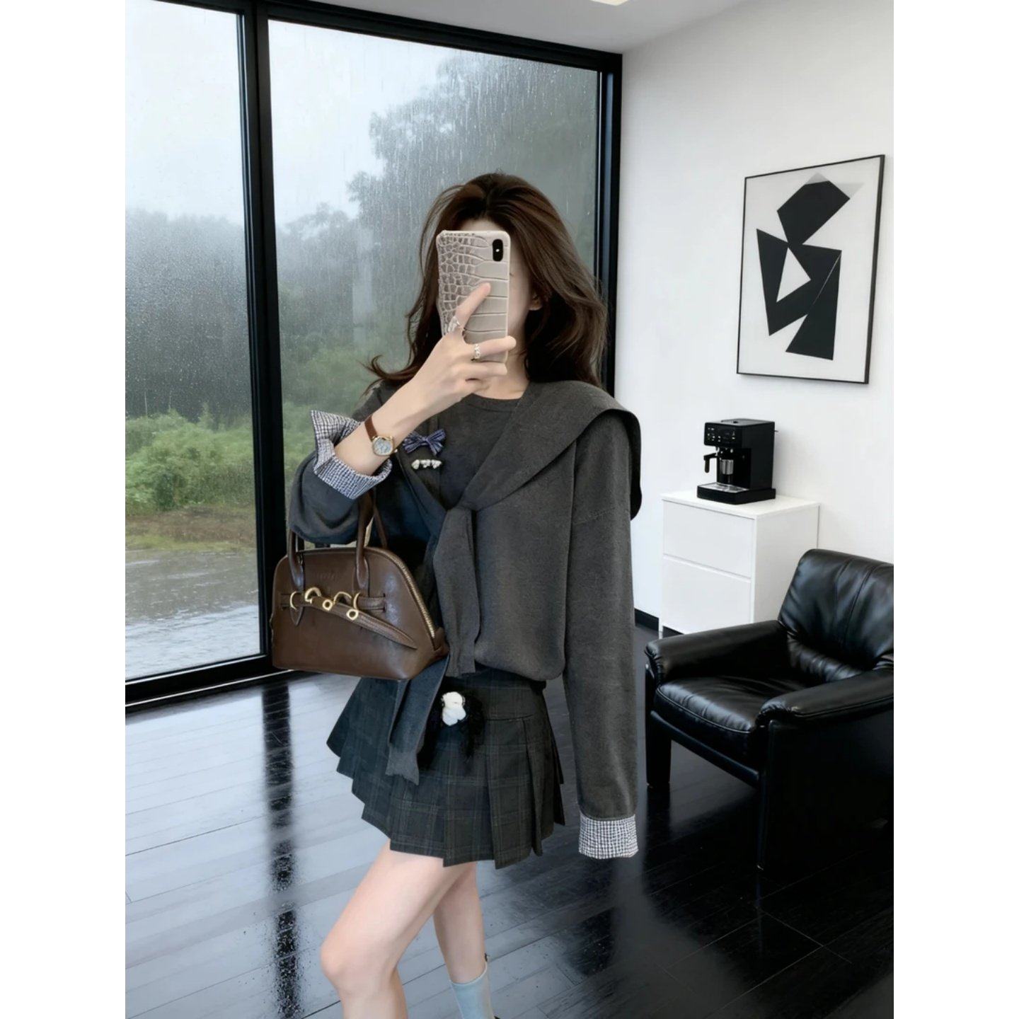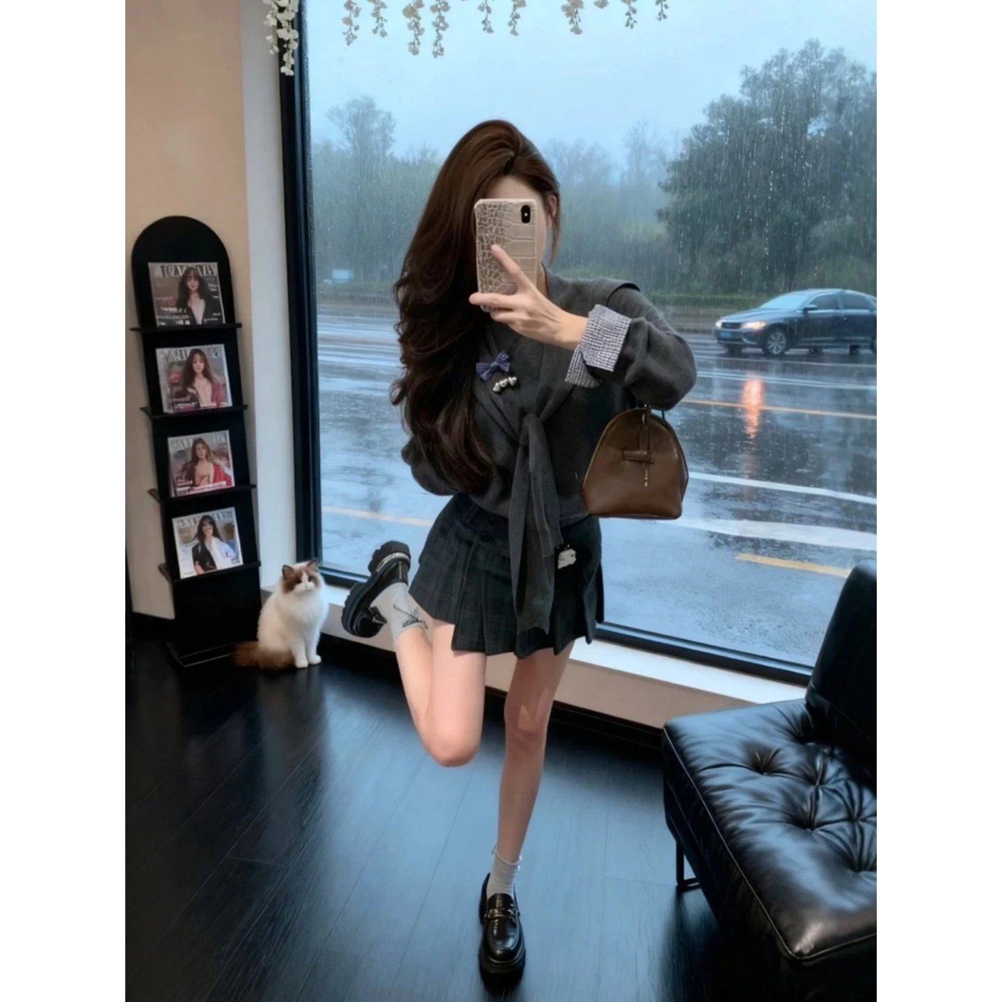 2026巨好看搭配一整套洋气减龄披肩针织衫上衣显瘦高腰半身短裙