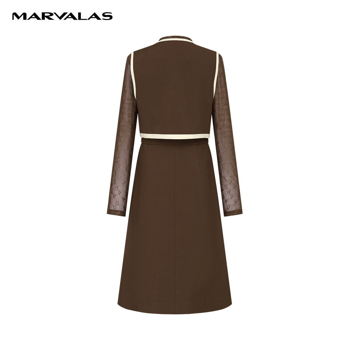 【粉丝专属】高腰拼色连衣裙秋季长袖圆领网纱长裙M534305153