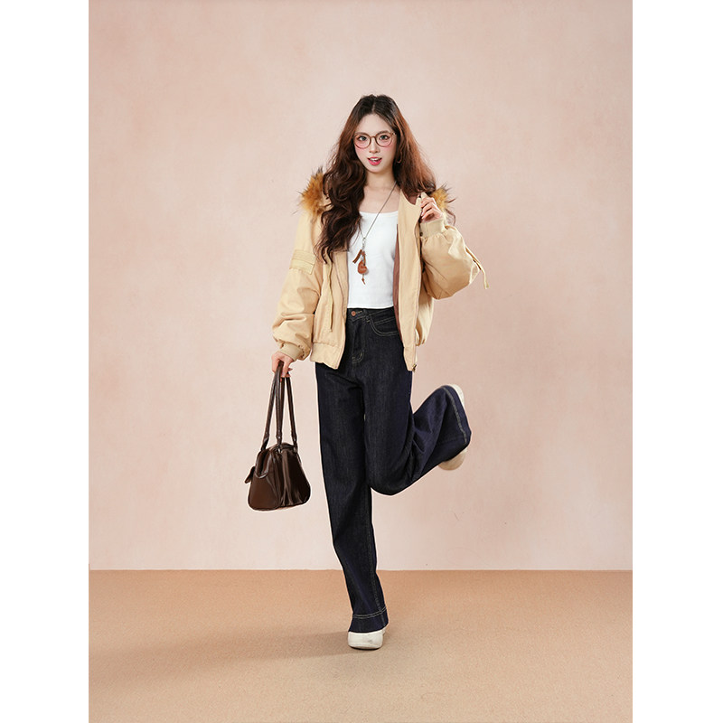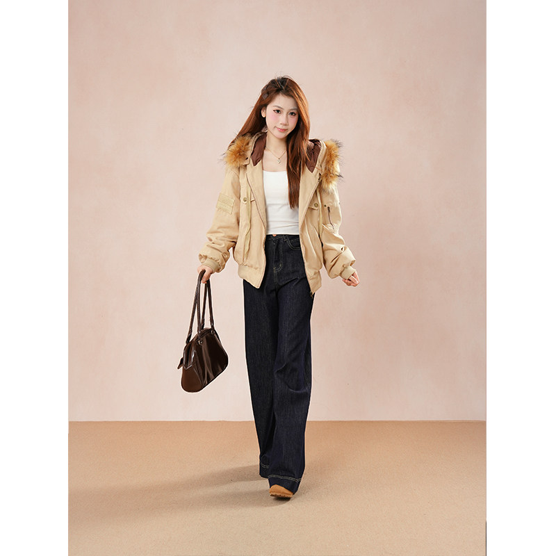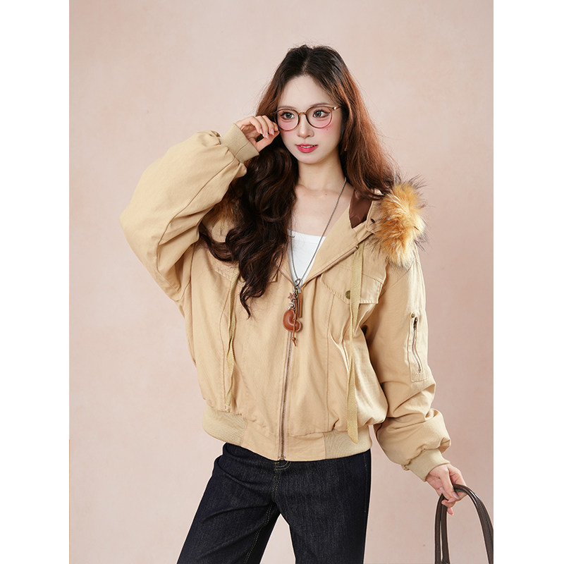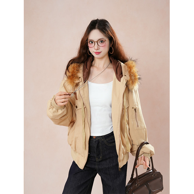 秋冬氛围感 复古气质工装毛领棉服外套ins简约通勤加厚宽松面包服