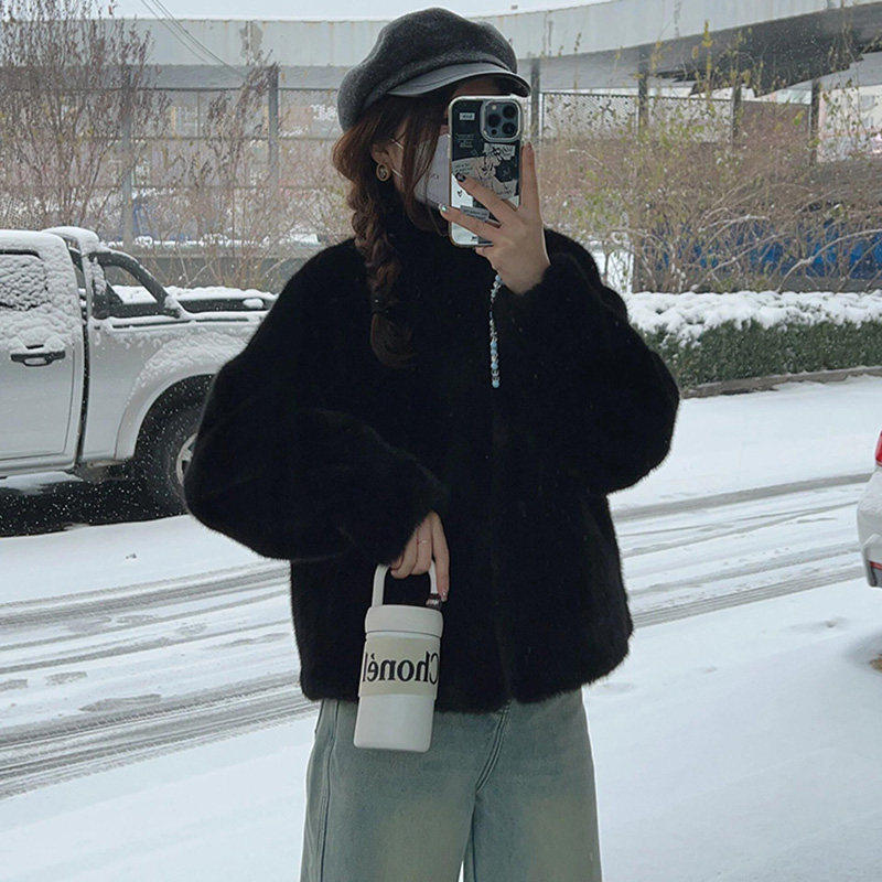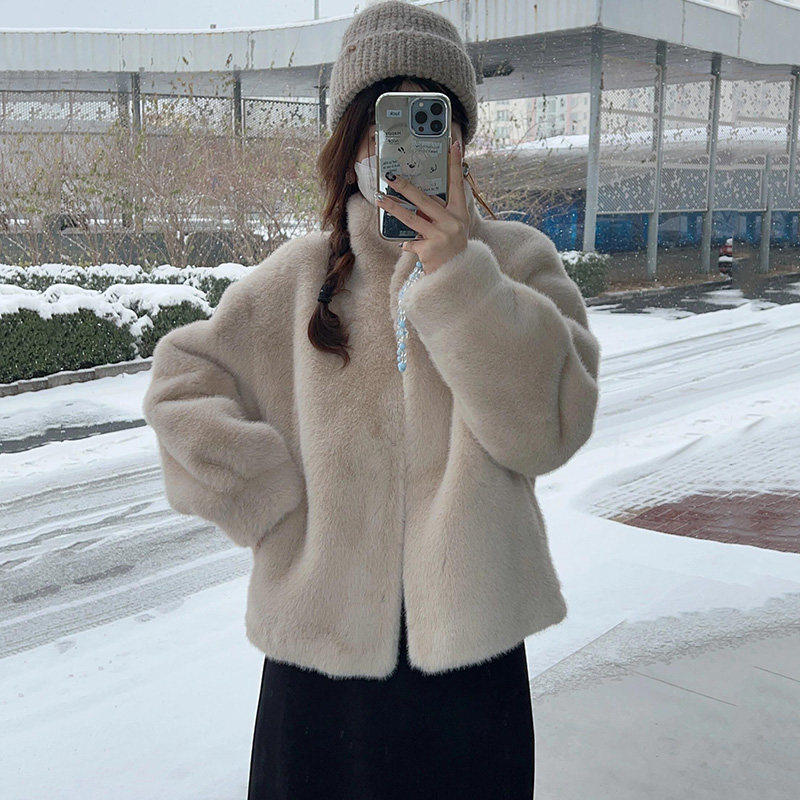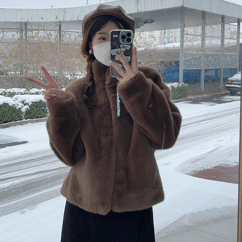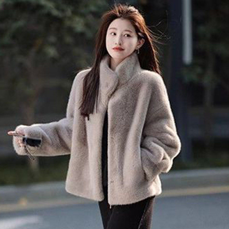 皮毛一体秋冬季新款水貂绒外套女短款保暖立领环保獭兔毛时尚外套