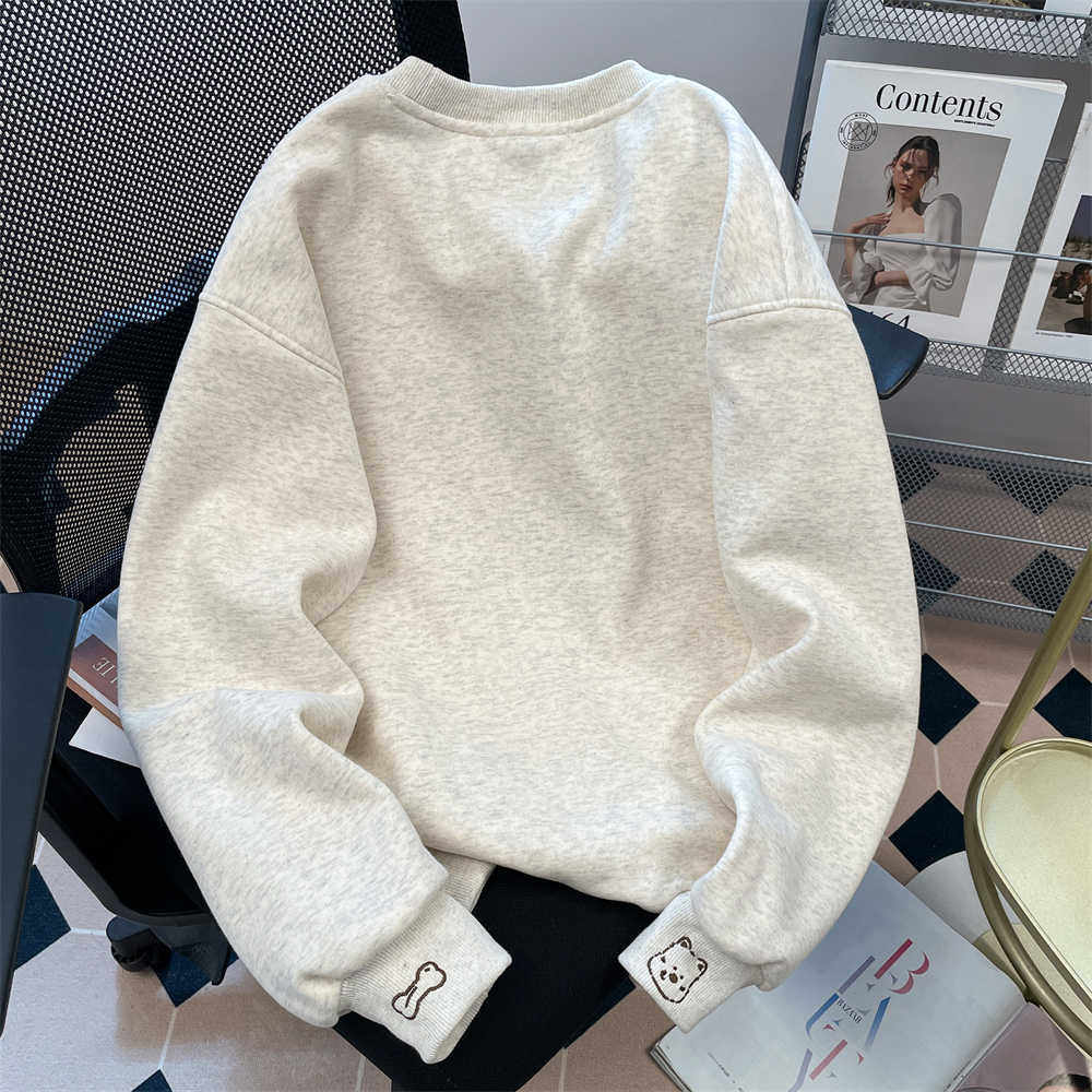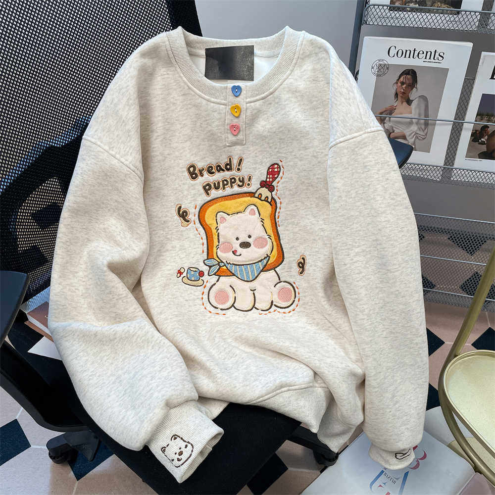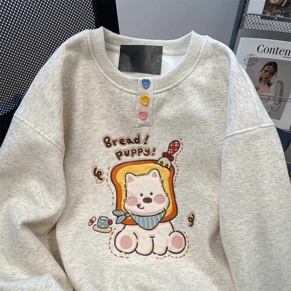 设计感可爱面包小狗印花卫衣男女秋冬加绒日系小个子休闲百搭上衣