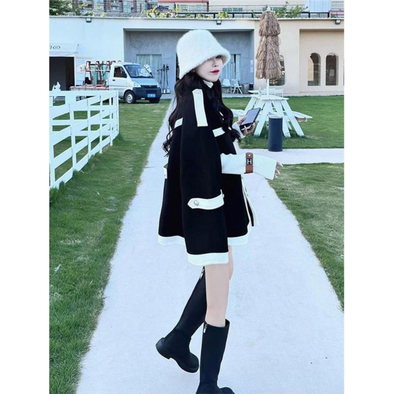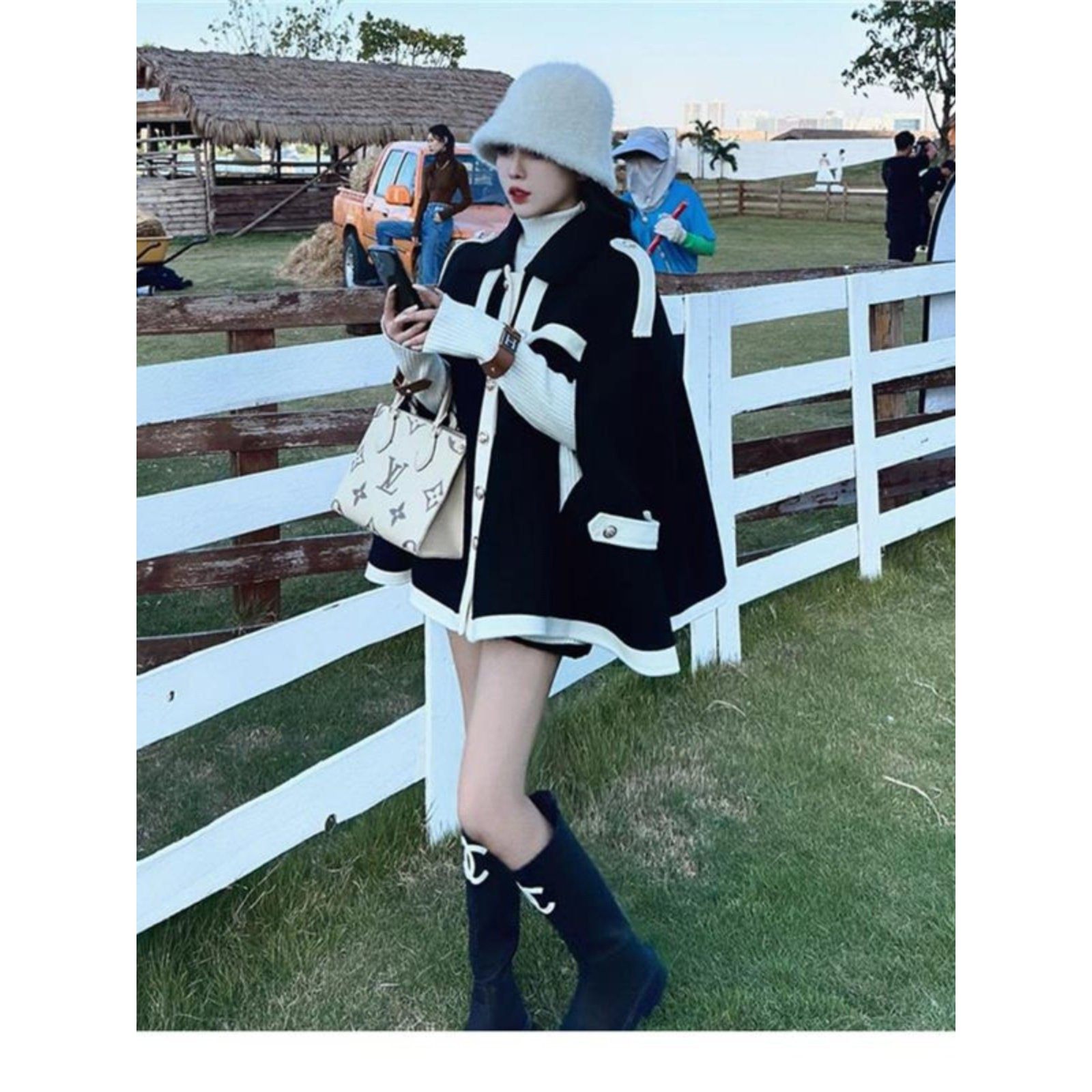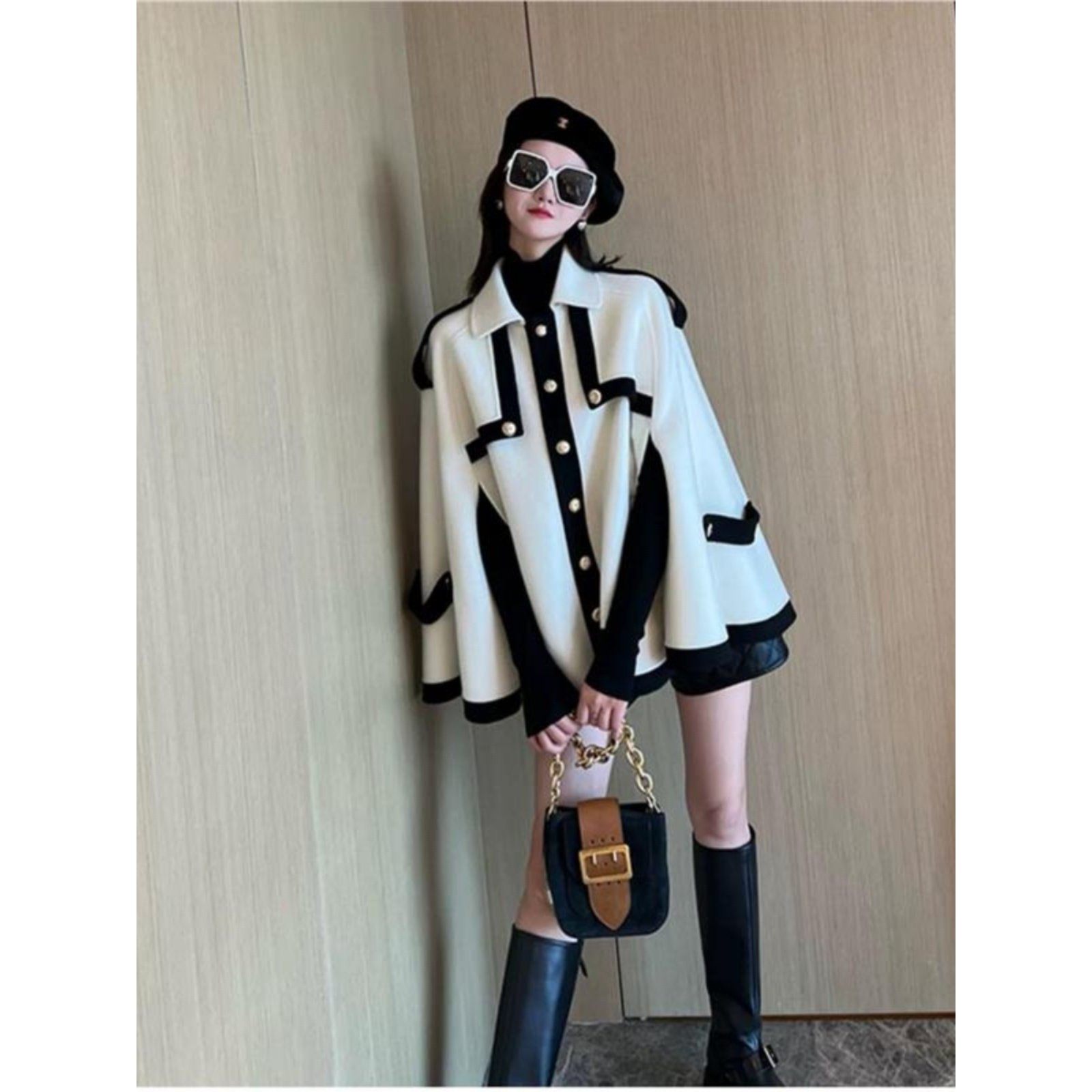 日本代购高级感小香风斗篷外套女2025新款赫本风气质小众毛呢大衣