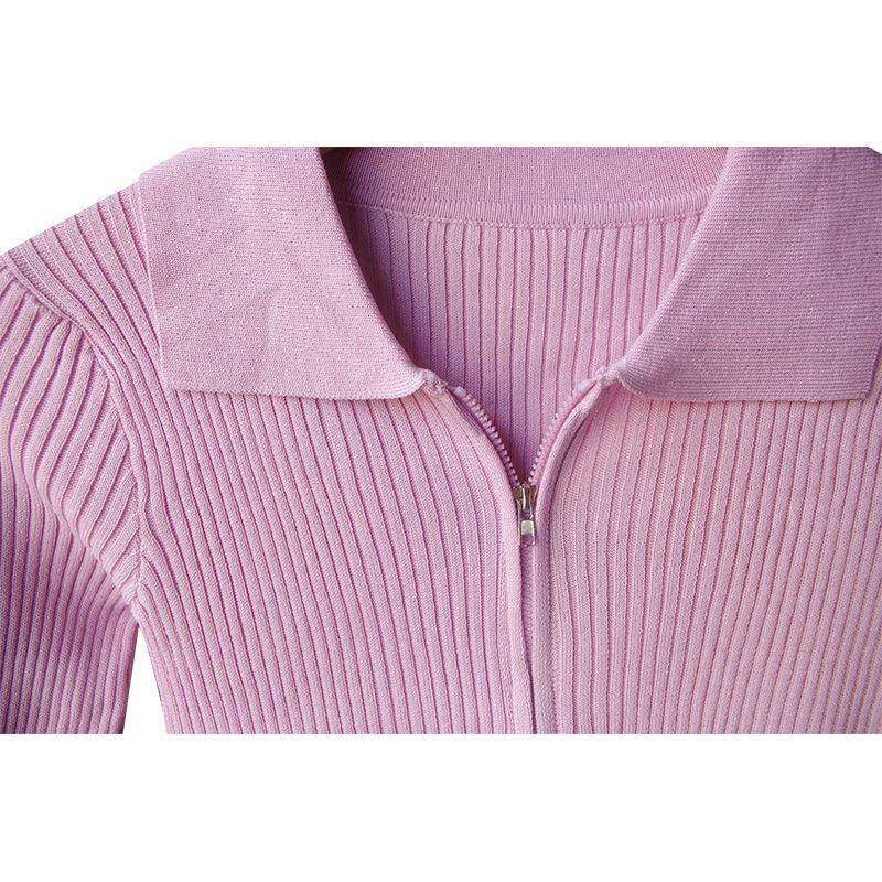 潮牌polo领拉链针织开衫女2025春秋季高腰紧身打底衫上衣外套毛衣