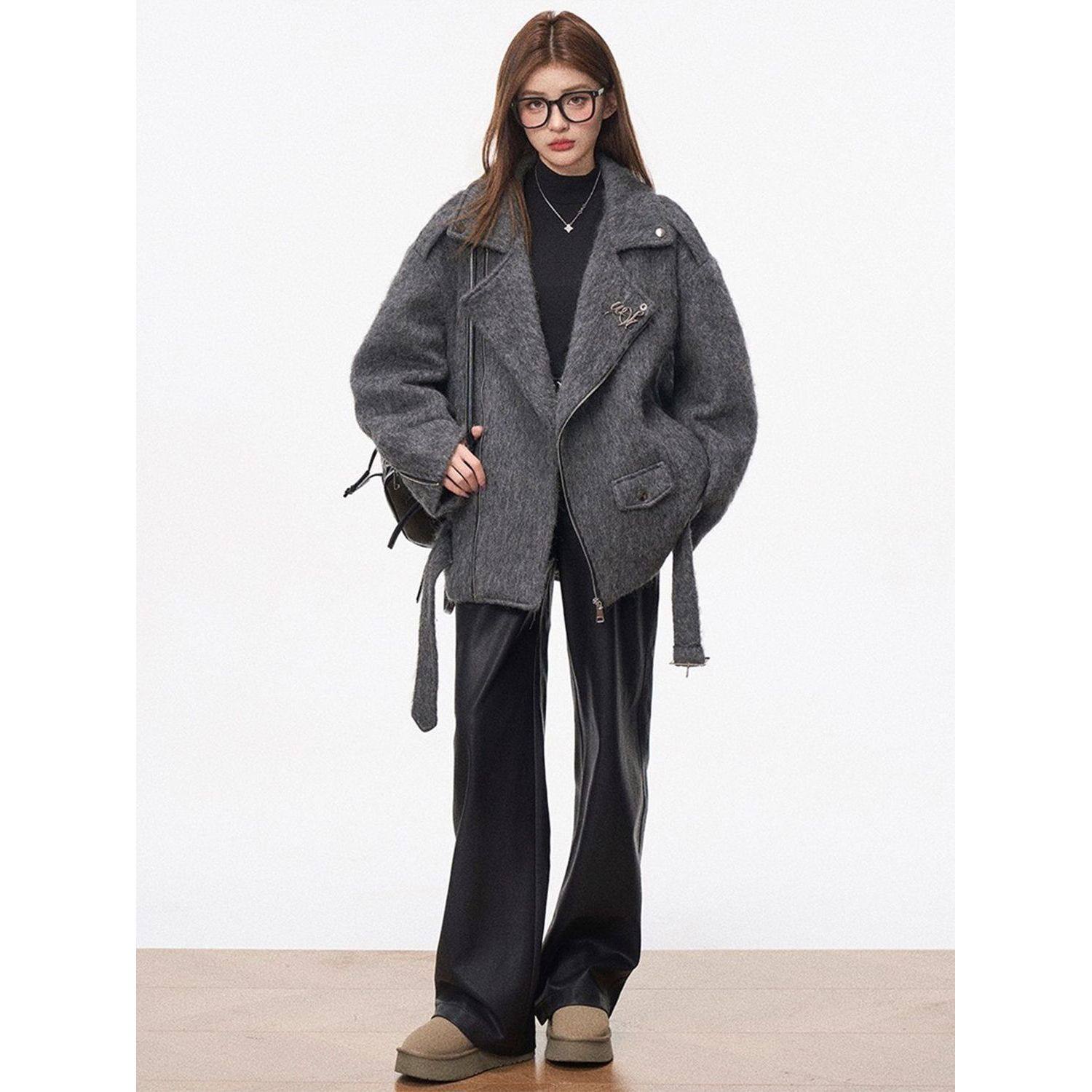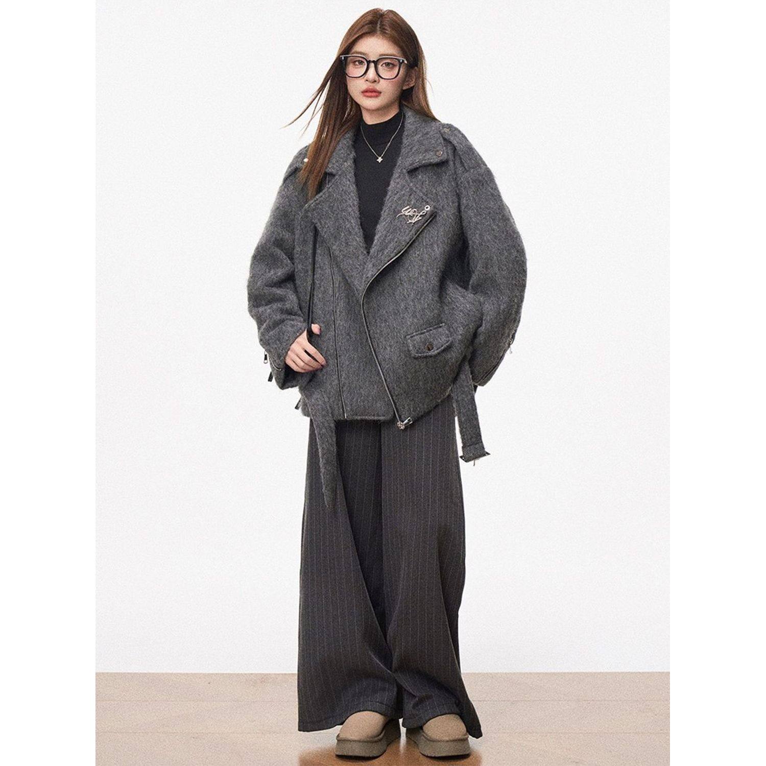 韩系高级感长毛毛呢西装大衣女2025冬季新款气质百搭通勤外套