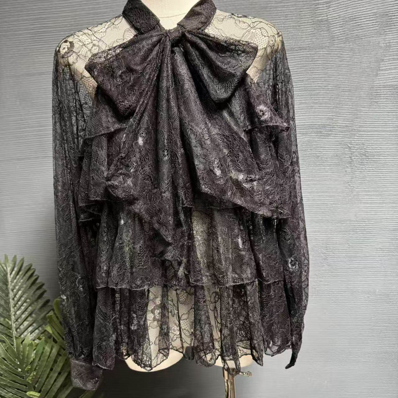 镜服饰2026法式温柔蝴蝶结蕾丝衬衫女荷叶边设计感名媛上衣10786