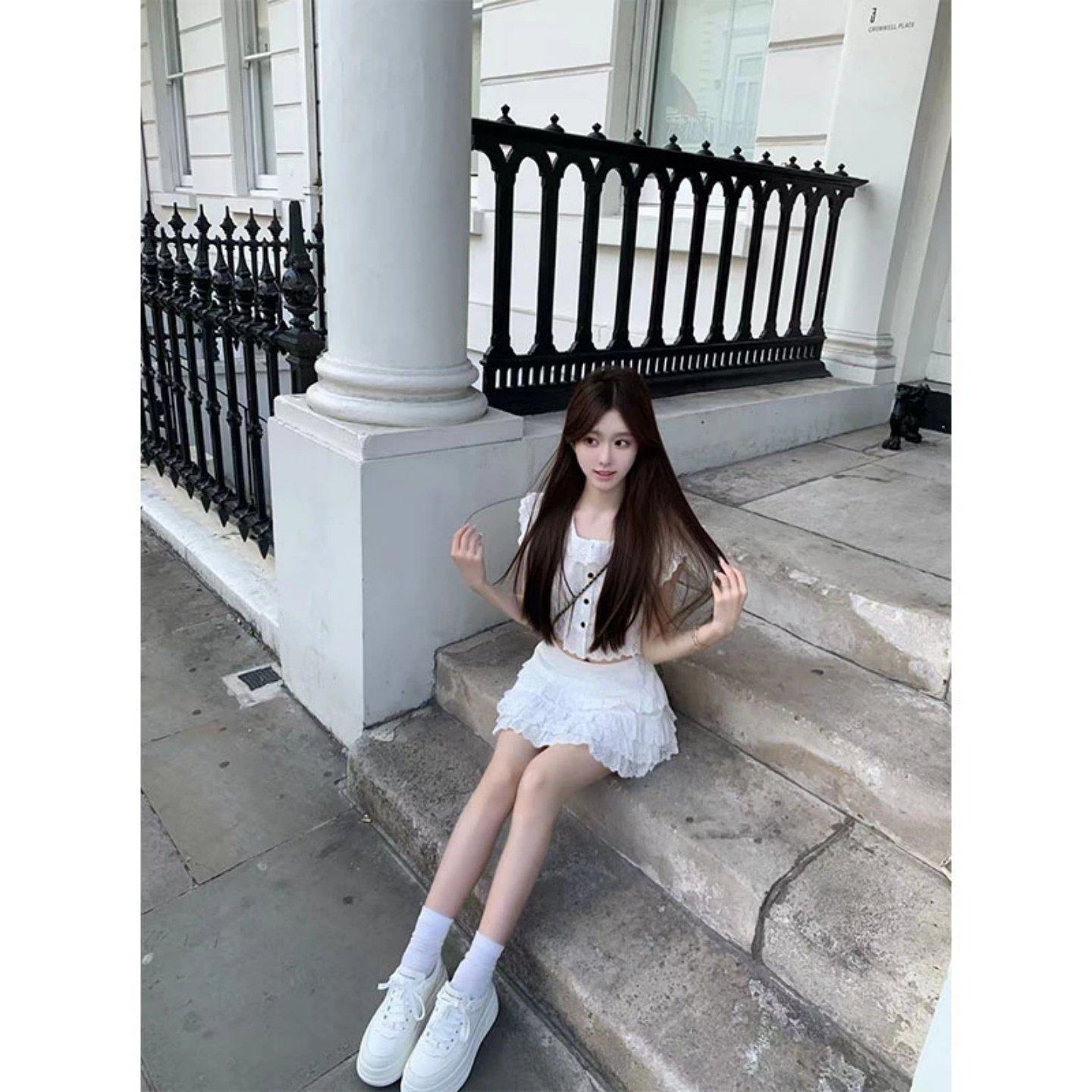 2026巨好看搭配一整套韩系减龄无袖衬衫上衣高腰显瘦百搭半身裙