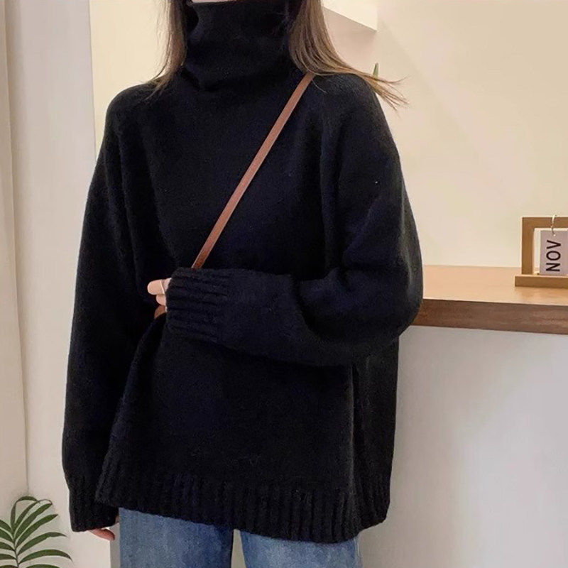 慵懒风毛衣女款2025新款冬季堆堆领宽松大码加厚高领针织打底衫女