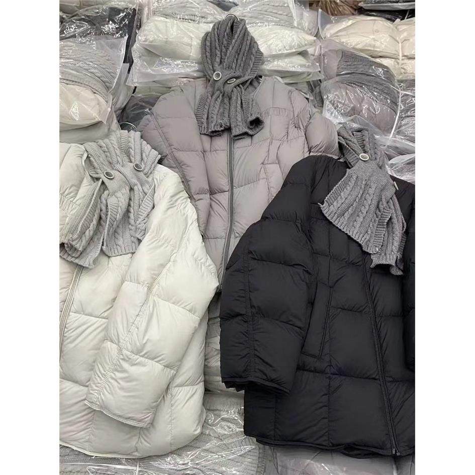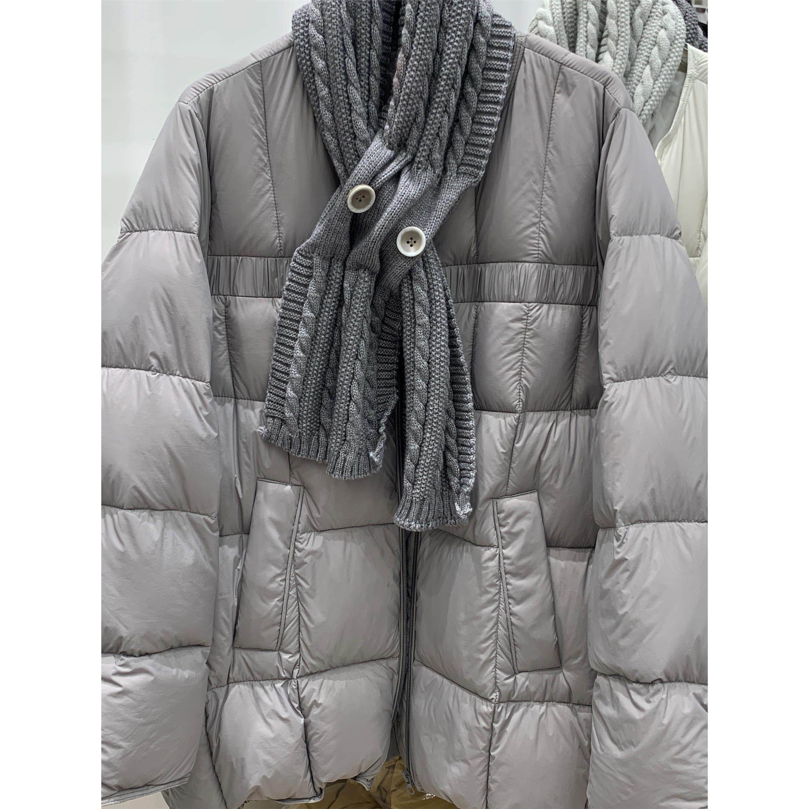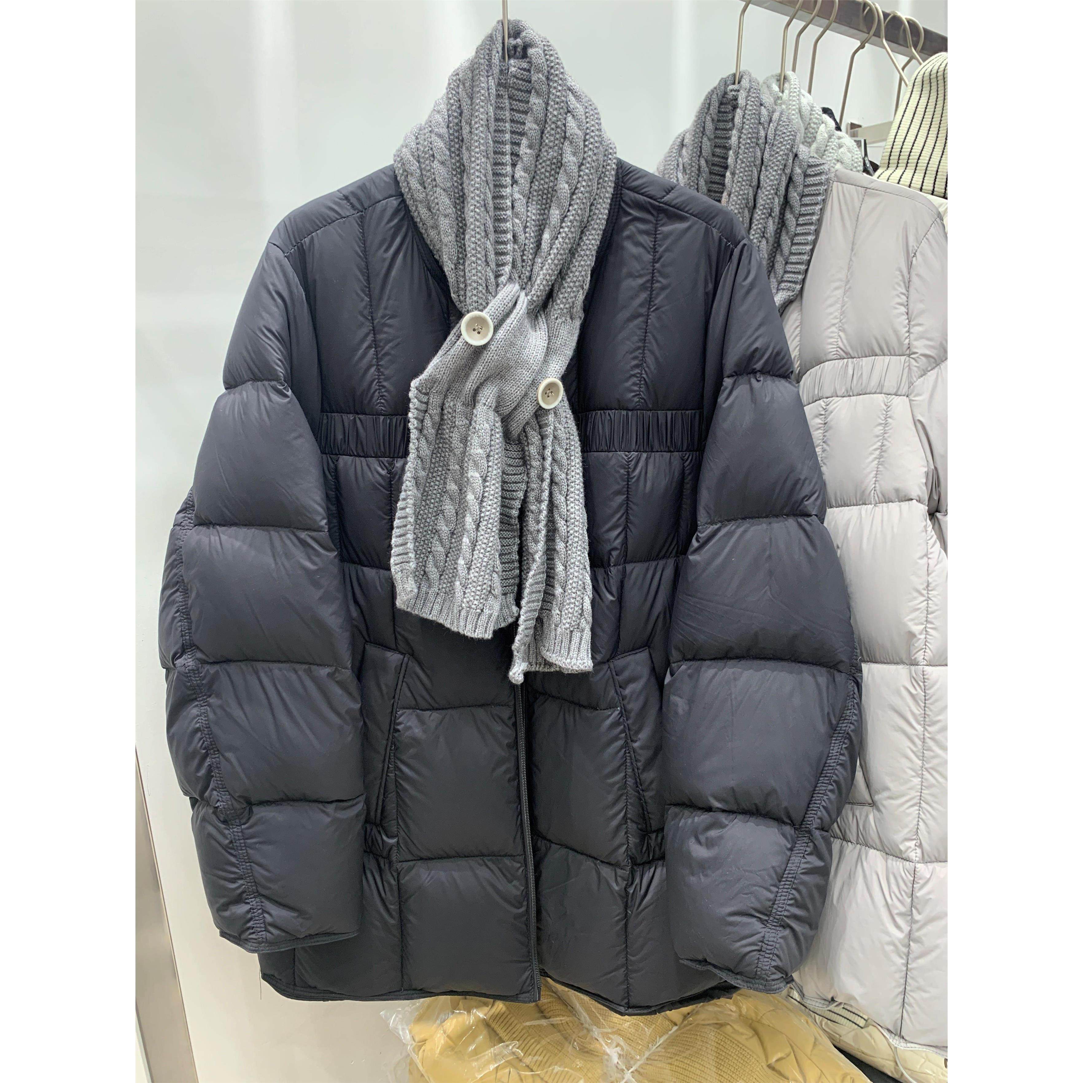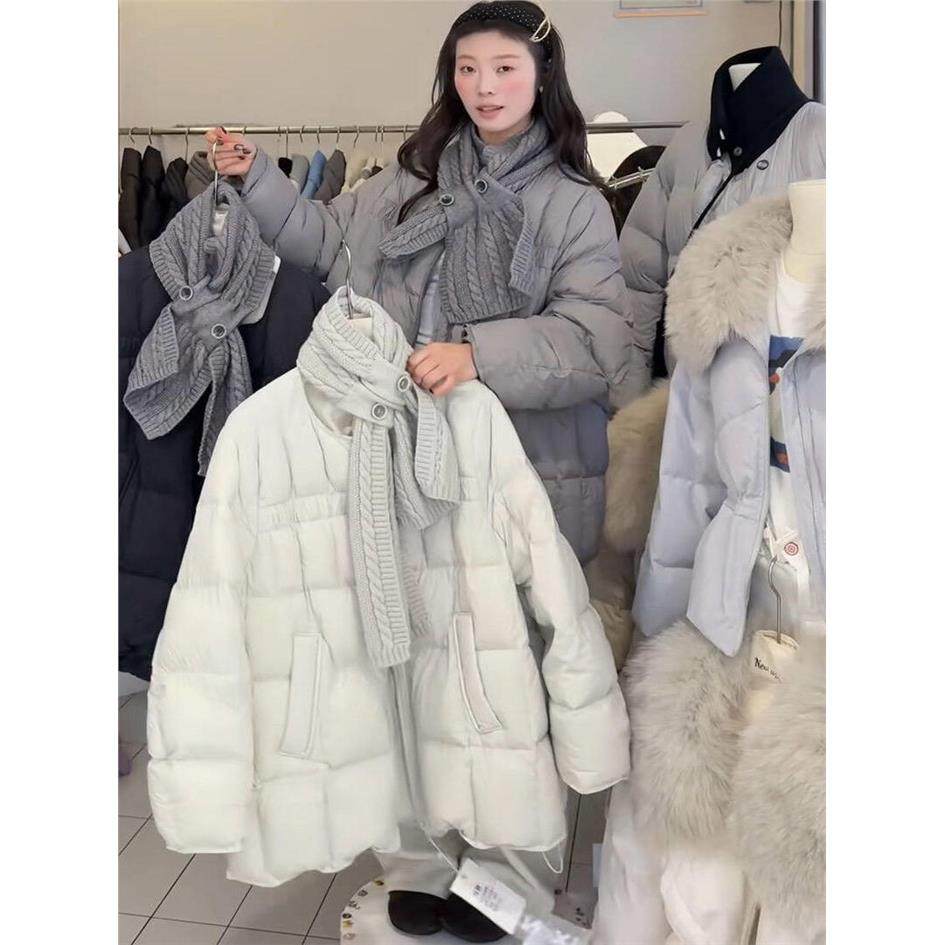 韩系配针织围巾圆领中长款羽绒服女欧货2025冬季新款白鸭绒外套潮