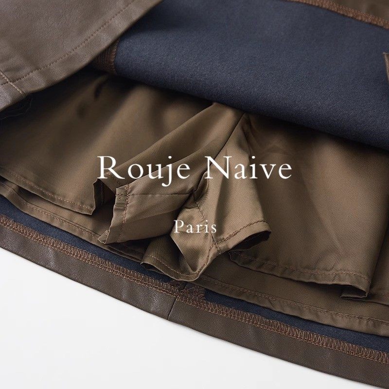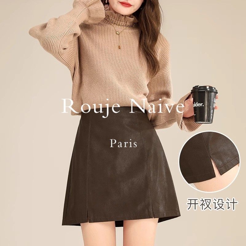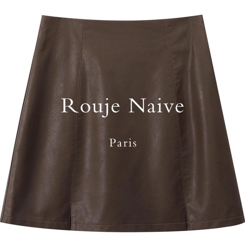 Rouje Naive小皮裙短裙女25春秋新款高腰a字裙子PU棕色包臀半身裙
