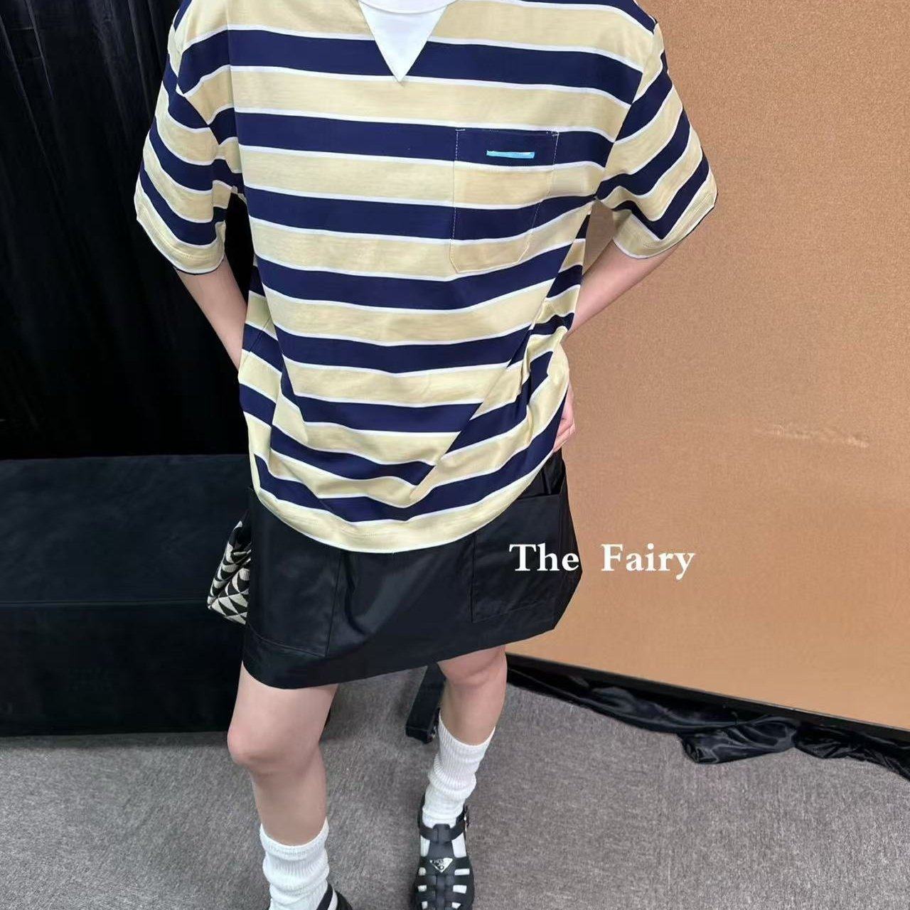 好漂亮黄黑拼色条纹T恤女2026年早春新款短上衣宽松休闲时尚气质