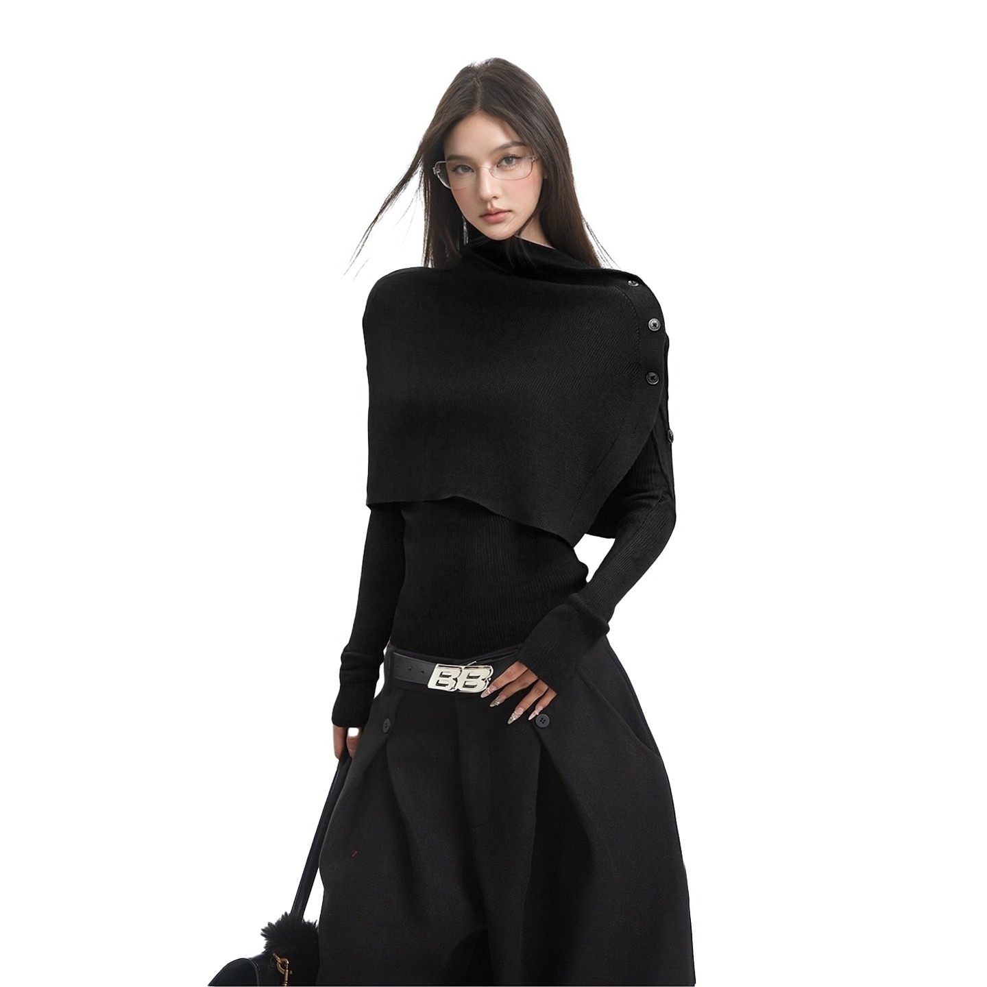 iamxiaa黑色斗篷针织衫毛衣真两件可拆卸披肩修身打底衫内搭上衣