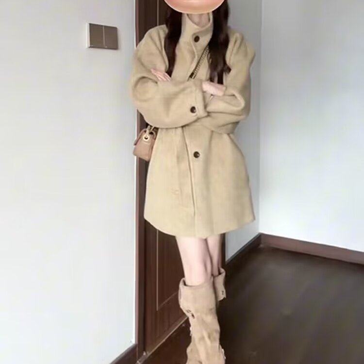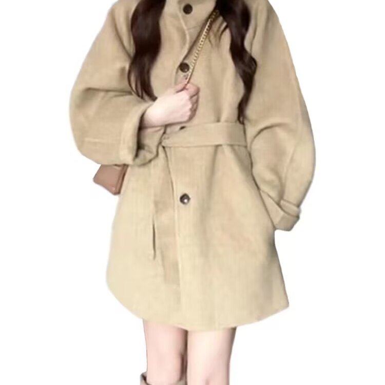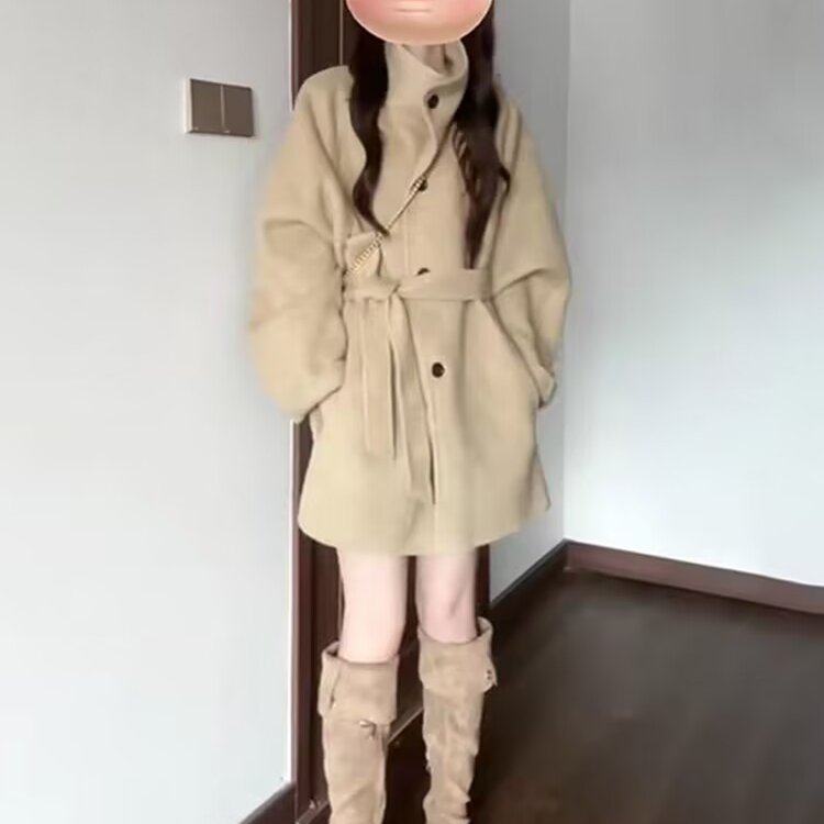 高级感立领双面毛呢外套女秋冬季2023新款收腰加厚小个子呢子大衣