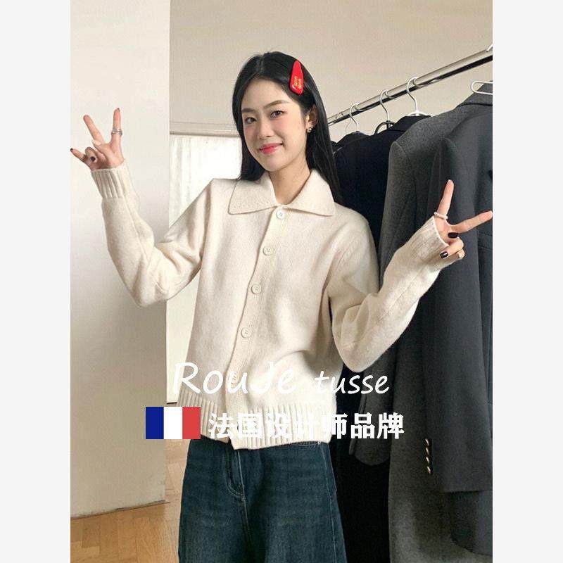 Rouje tusse小香风蓝色羊绒毛衣外套女洋气百搭显瘦羊毛针织开衫