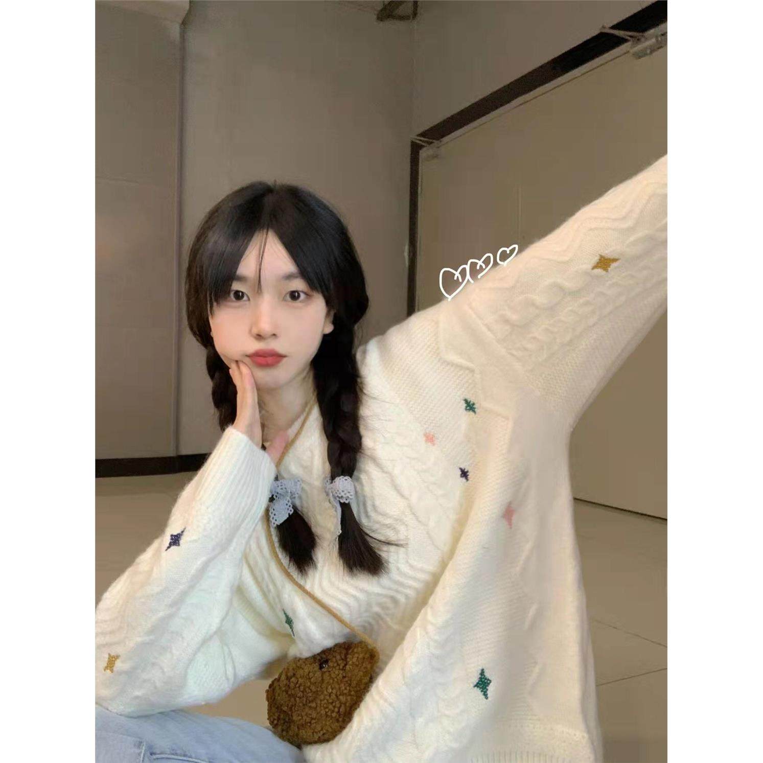 日本风格覆古可爱软蜡捻针织衫秋冬女性慵懒风格宽松套头衫外穿加