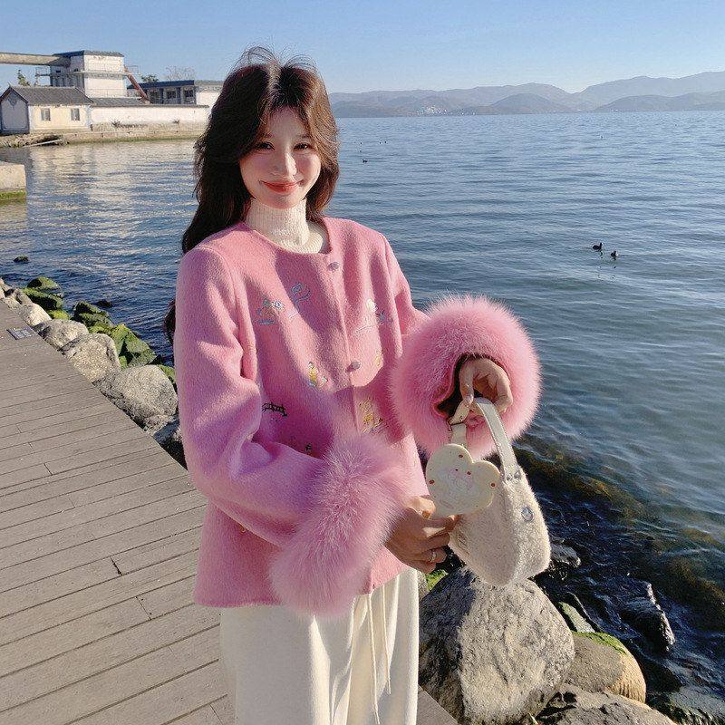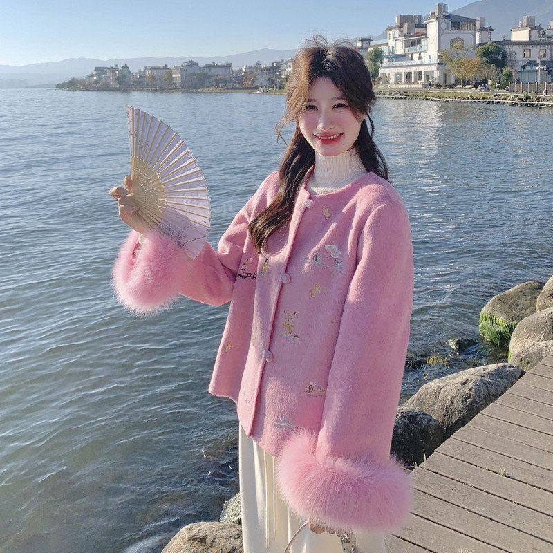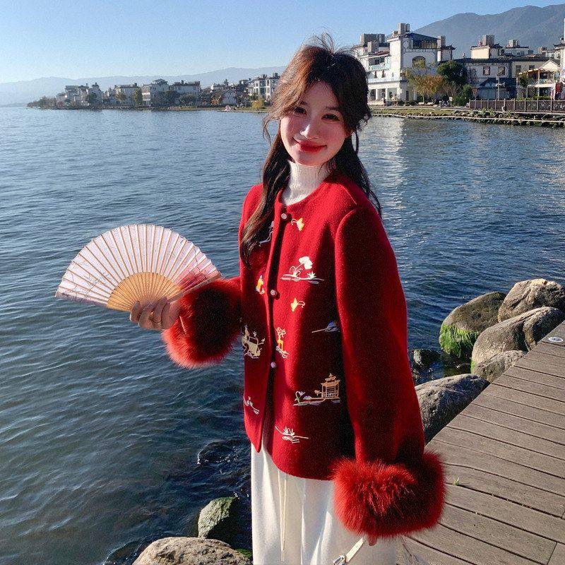 新中式国风双面羊绒毛呢外套女冬2025新款巨好看洋气新年红色战袍