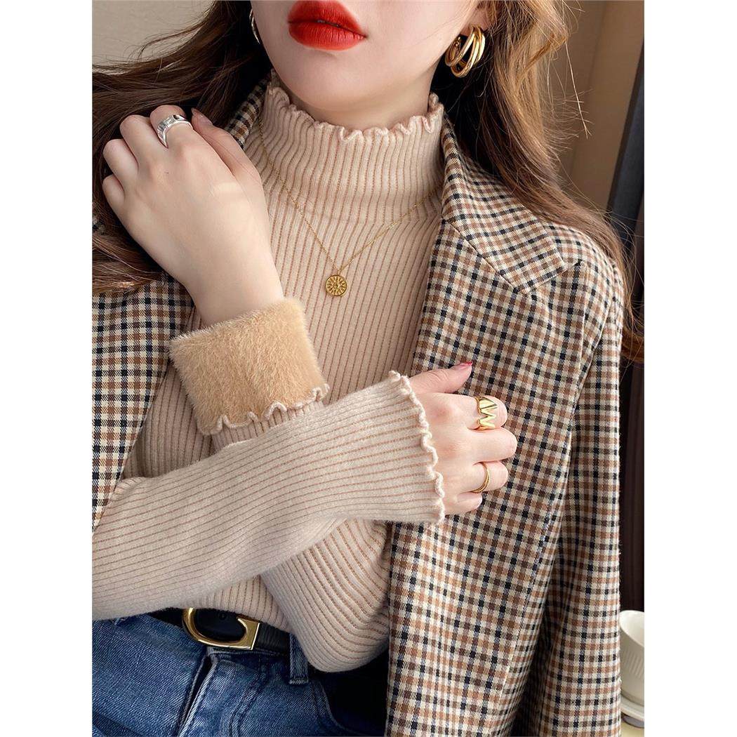 丝绒底衫女式秋冬毛衣2025新款加厚内件式丝绒冬季白色半高领上衣