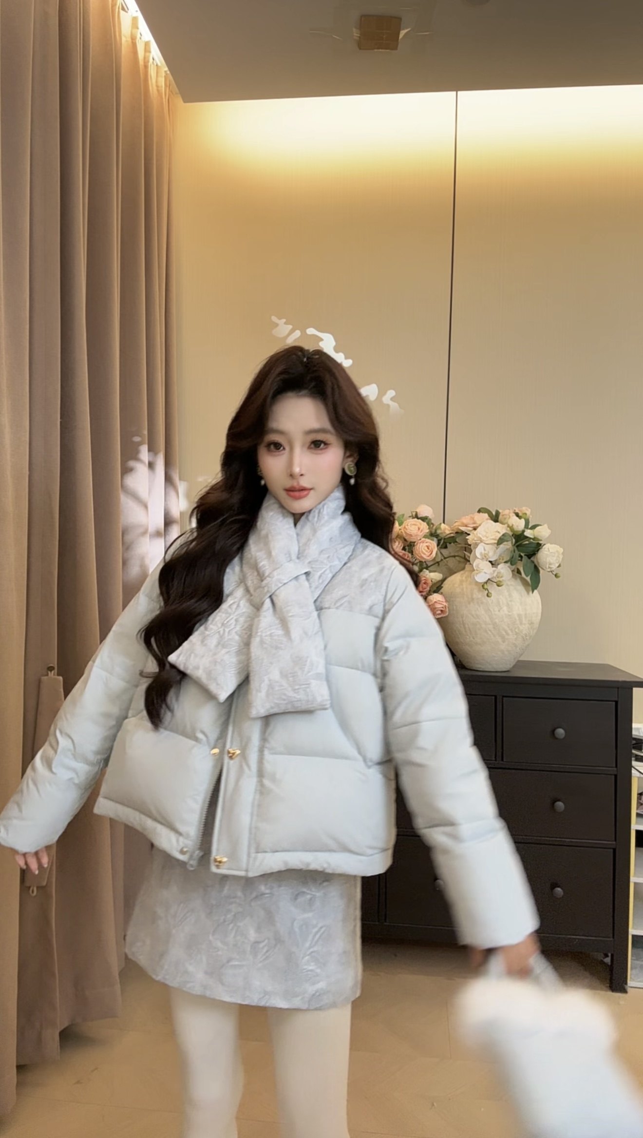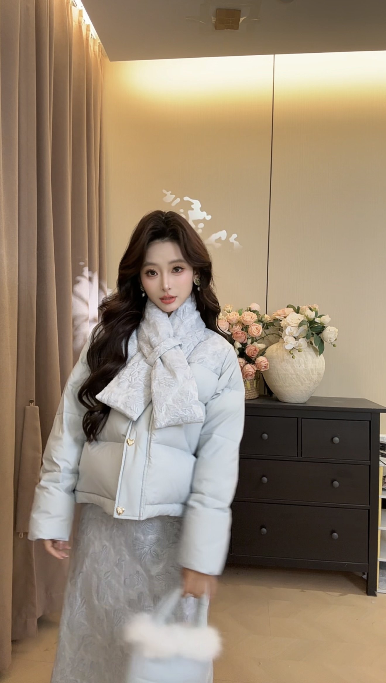 可可可欣【薄雾蓝湾羽绒套装】女装洋气时尚休闲原创小众老钱风