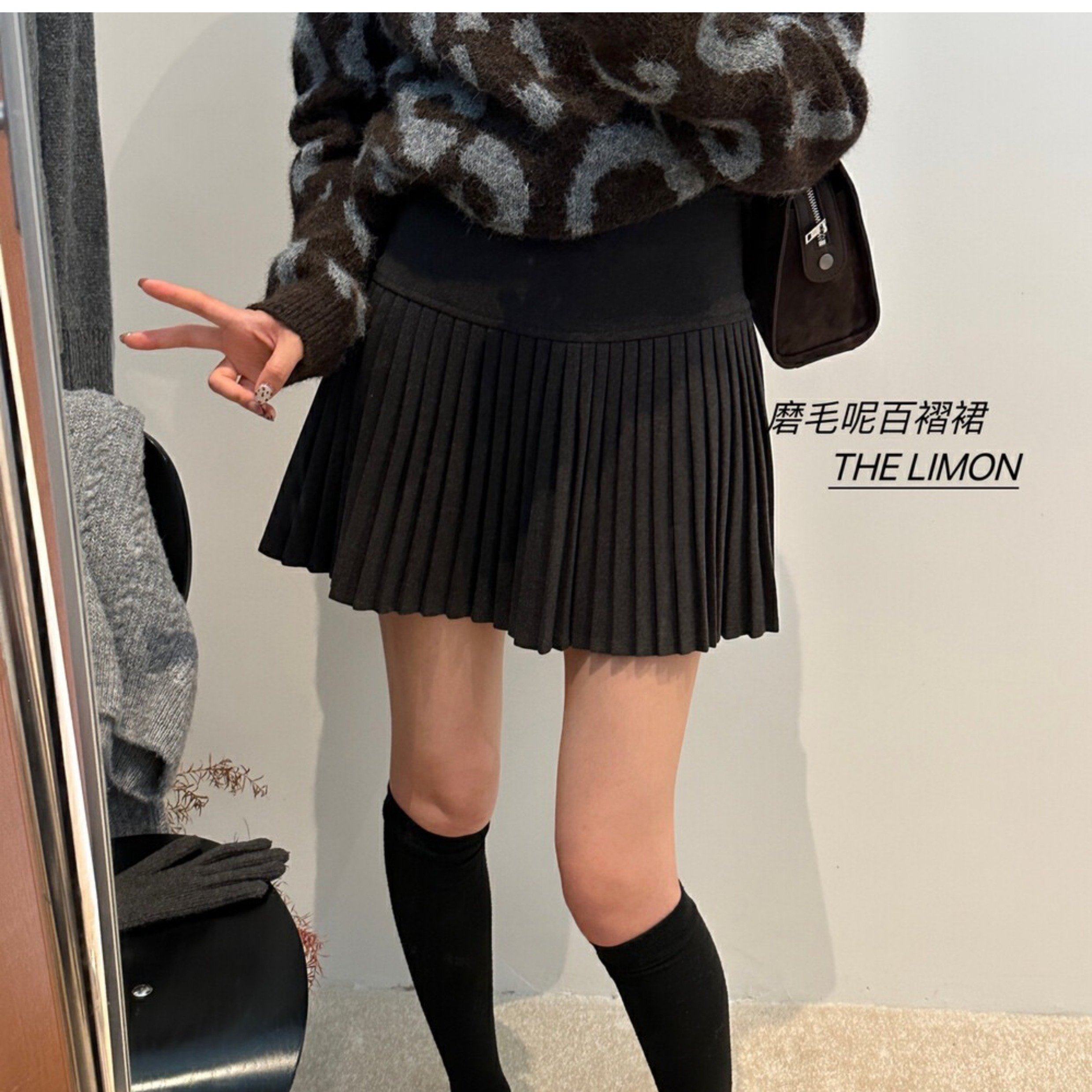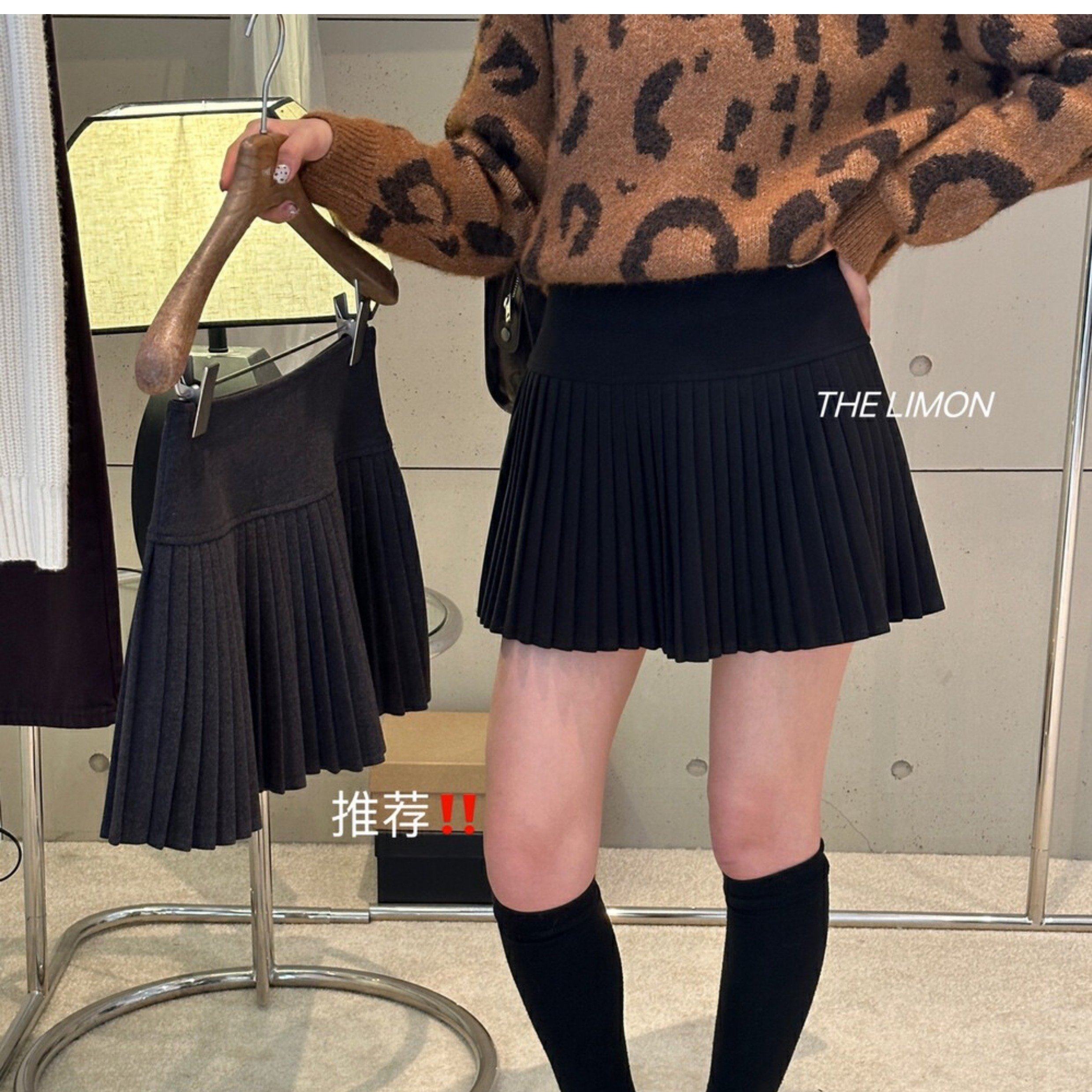 加厚毛呢压褶半身裙女秋冬大码小个子高腰遮胯A字防走光百褶短裙