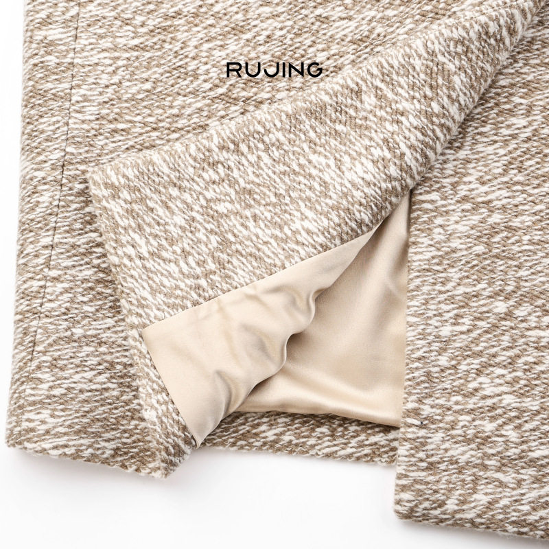 RUJING 丨黑标【云絮花纱】100%羊毛立领保暖毛呢外套大衣-2512XW