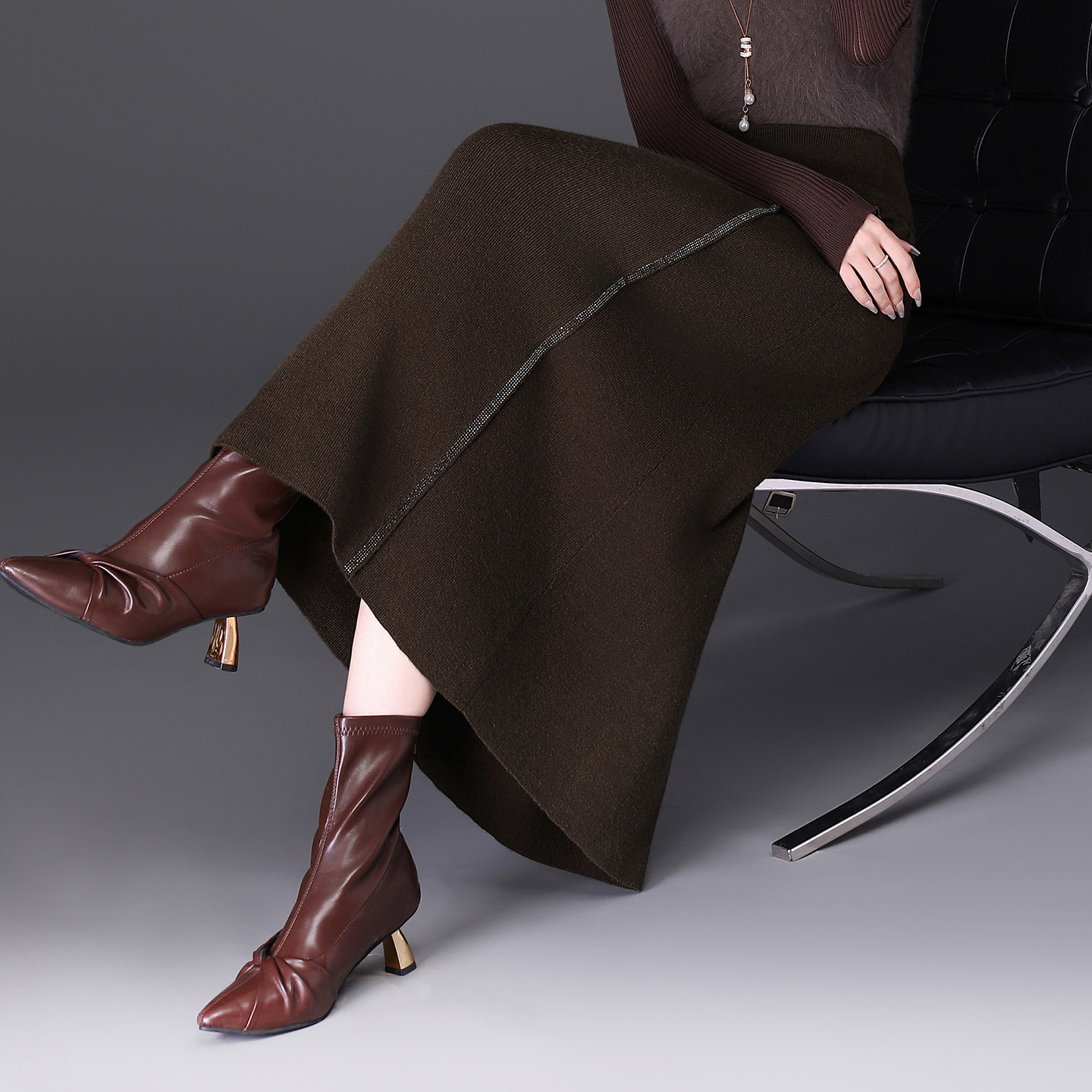 气质毛线a字筒裙半身裙女秋冬2025新款高腰显瘦通勤针织裙中长裙