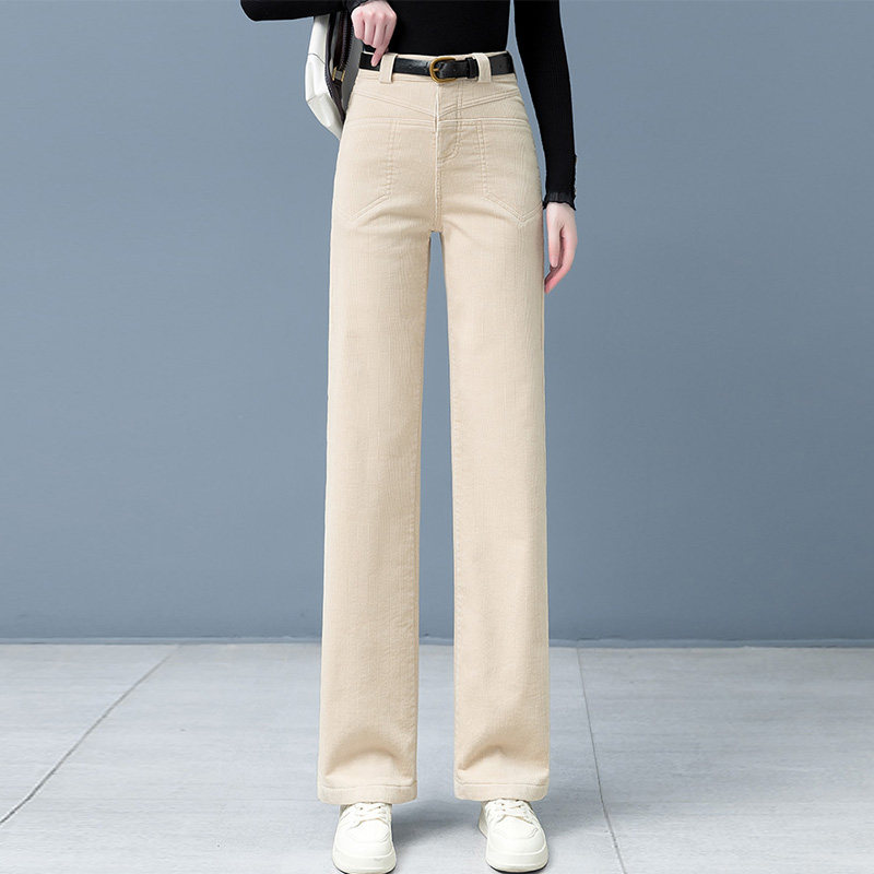 啄木鸟卡其色裤子女新款秋冬天加绒加厚灯芯绒条绒中年妈妈阔腿裤