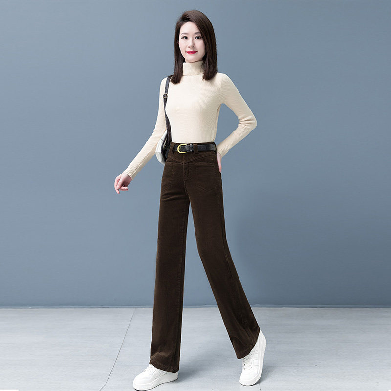 首页> 女装> 啄木鸟卡其色裤子女新款秋冬天加绒加厚灯芯绒条绒中年妈妈阔腿裤