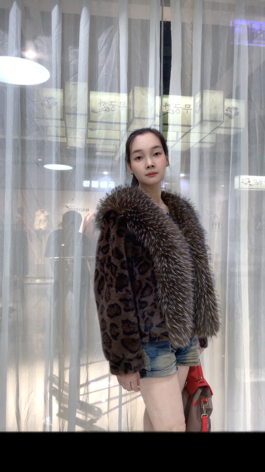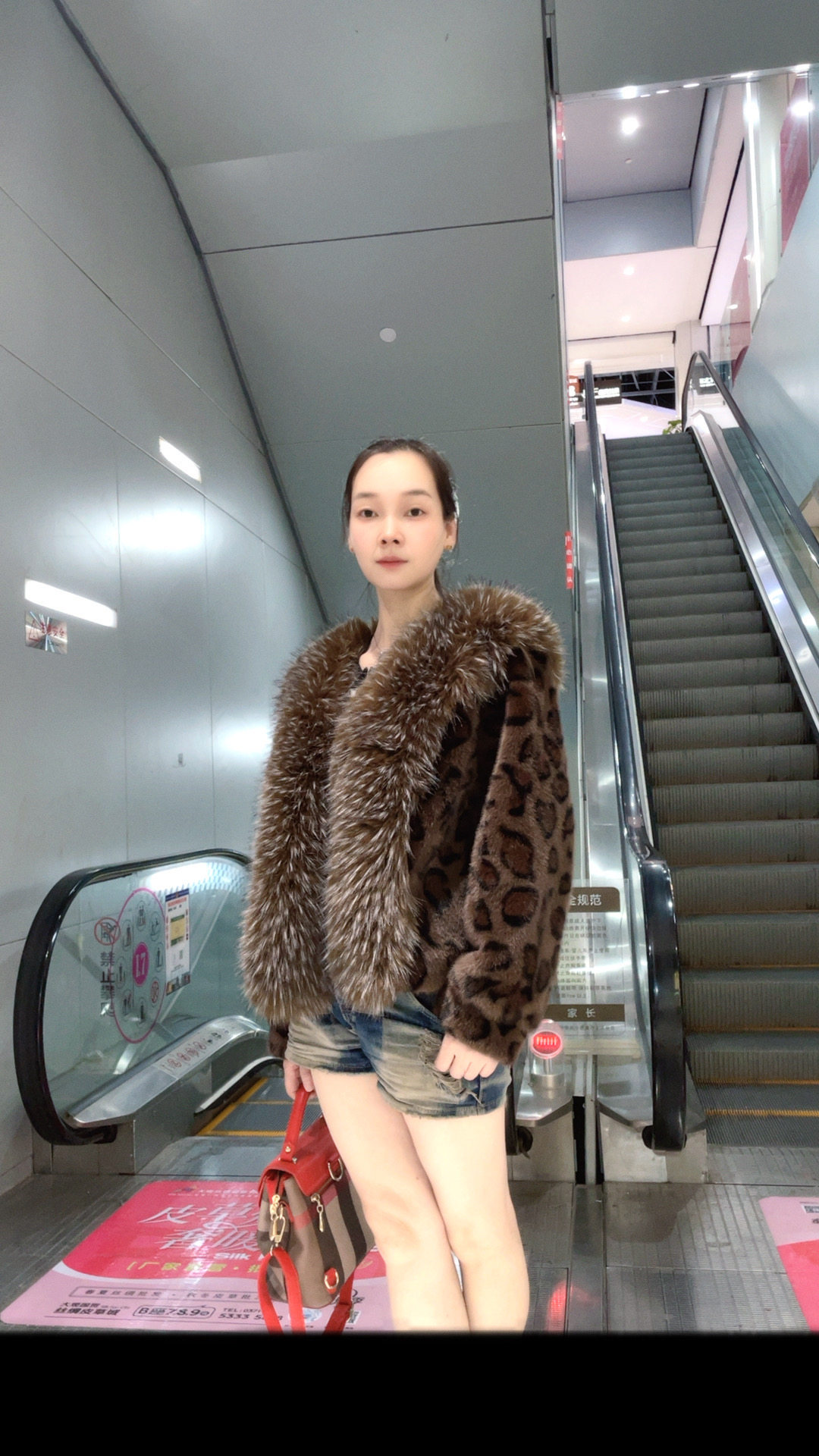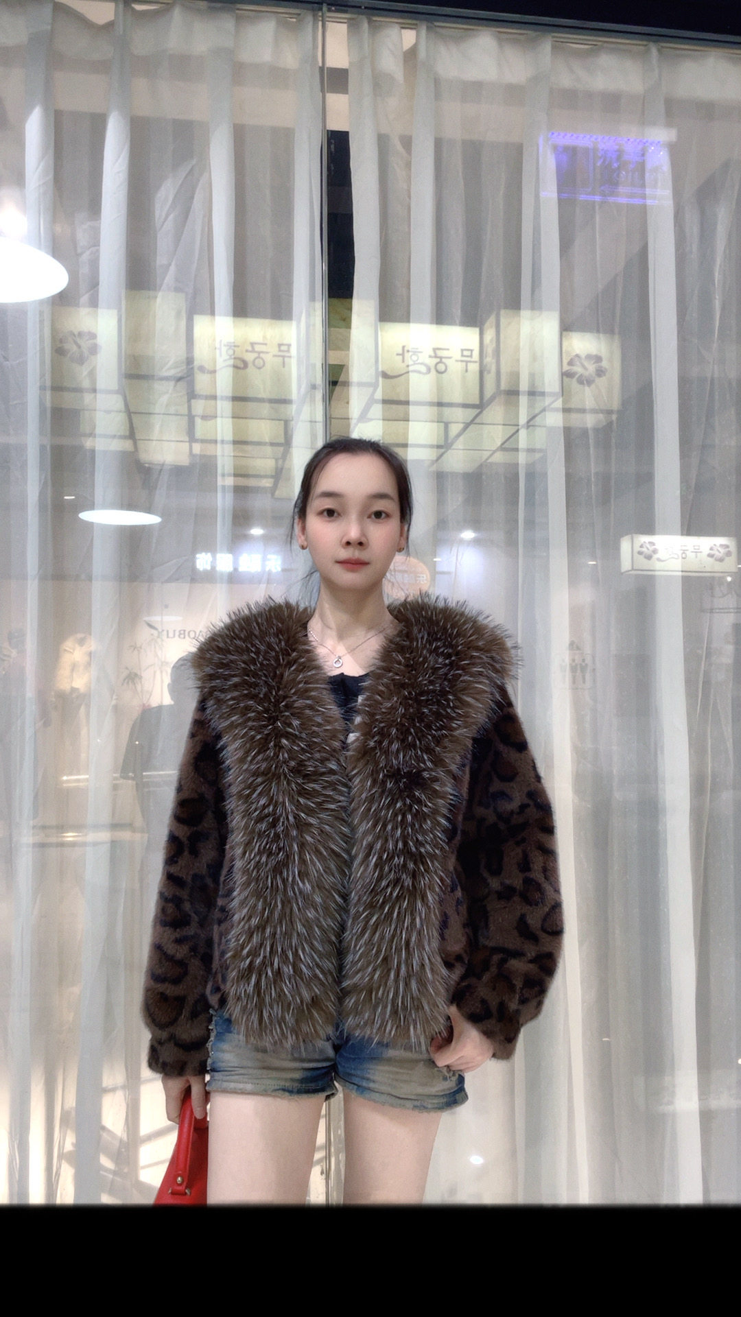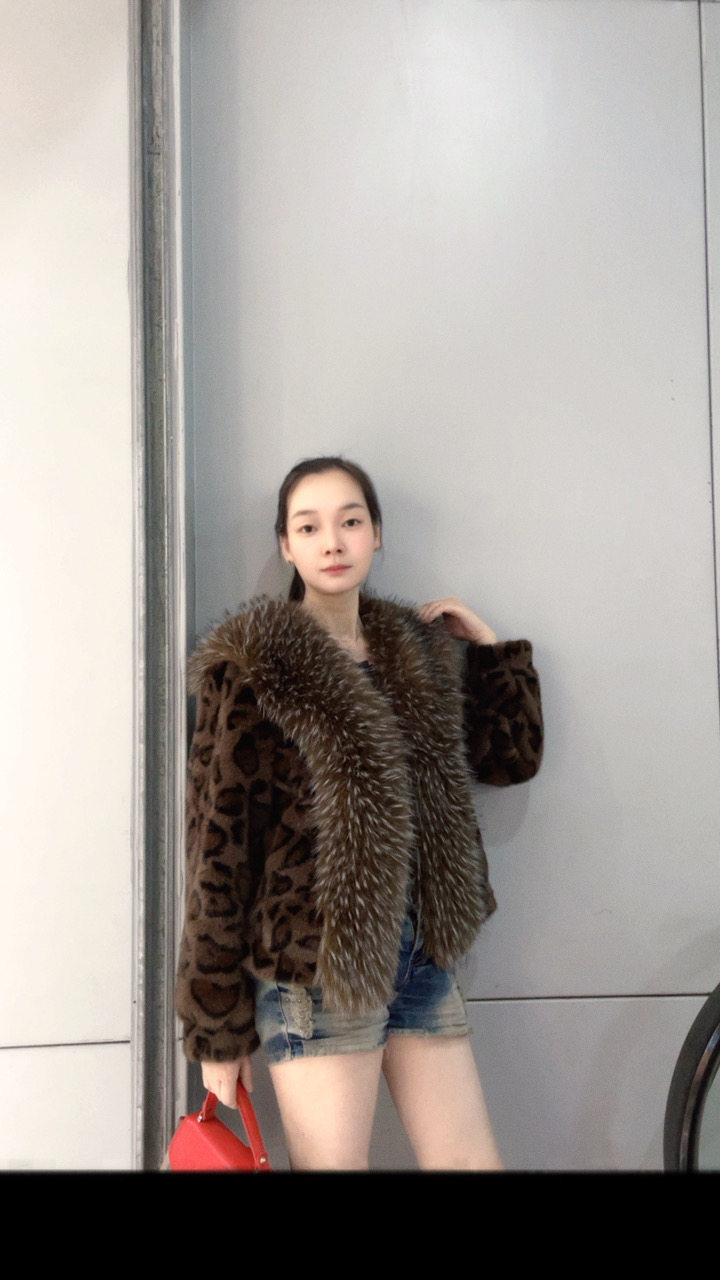 新款欧美风外套女短款豹纹大牌环保米兰貂欧貂绒时尚大毛领