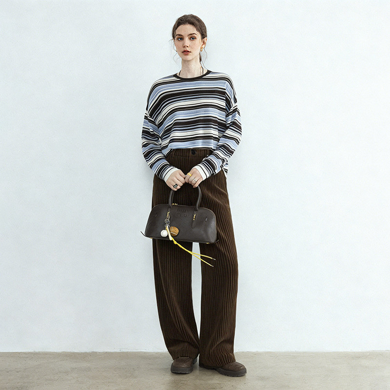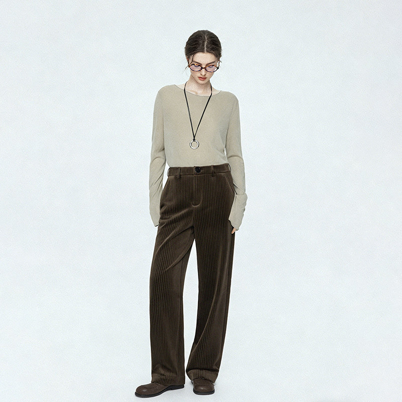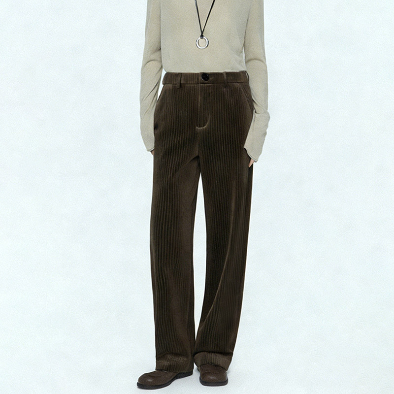 首页> 女装> 复古灯芯绒阔腿裤女高腰直筒休闲裤小个子显瘦长裤2025简约百搭款