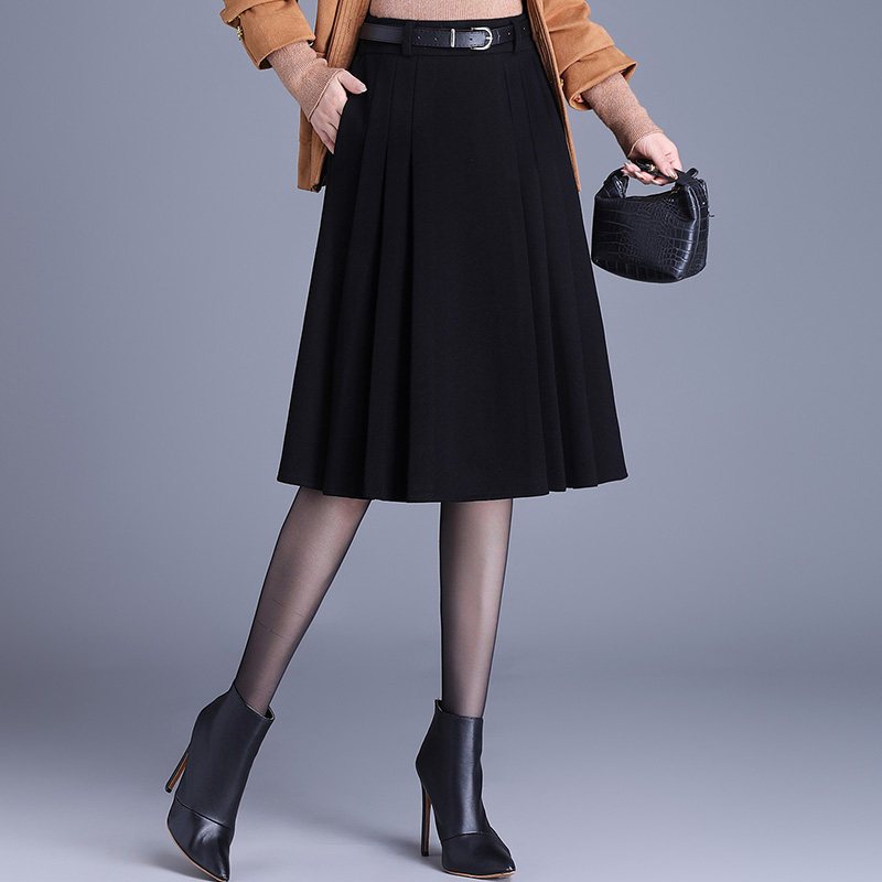首页> 女装> 毛呢百褶中裙半身裙女秋冬2025新款高腰显瘦遮胯中长小个子a字裙