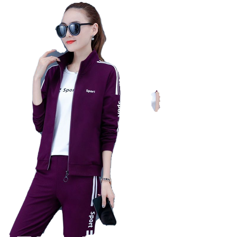 运动服套装女春秋季大码女装2022新款潮妈妈时尚显瘦休闲服三件套