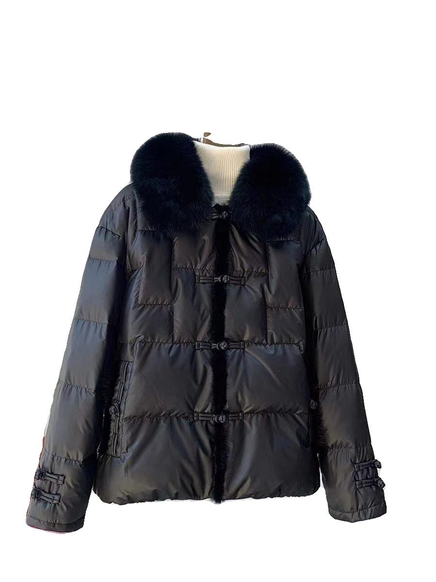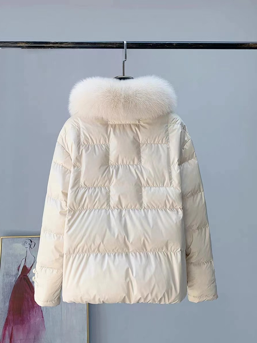 新款中国风狐狸毛领可脱卸皮草羽绒服短款水貂毛白鸭绒冬季外套女