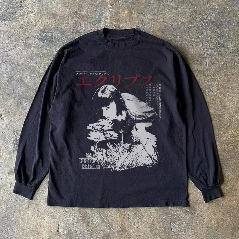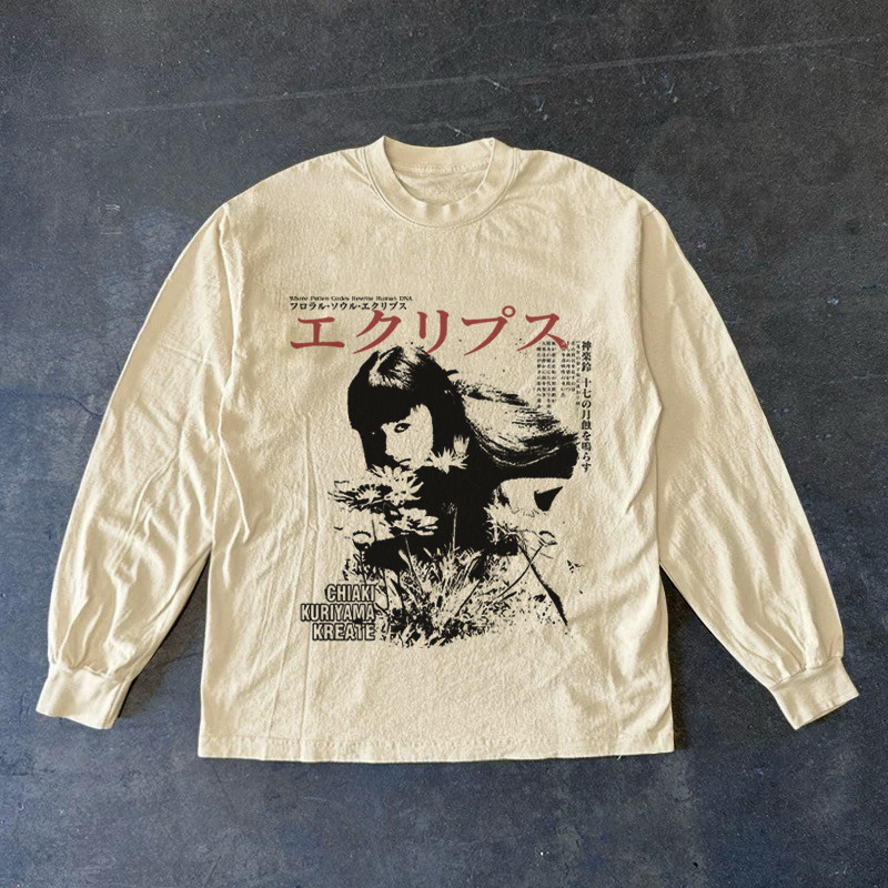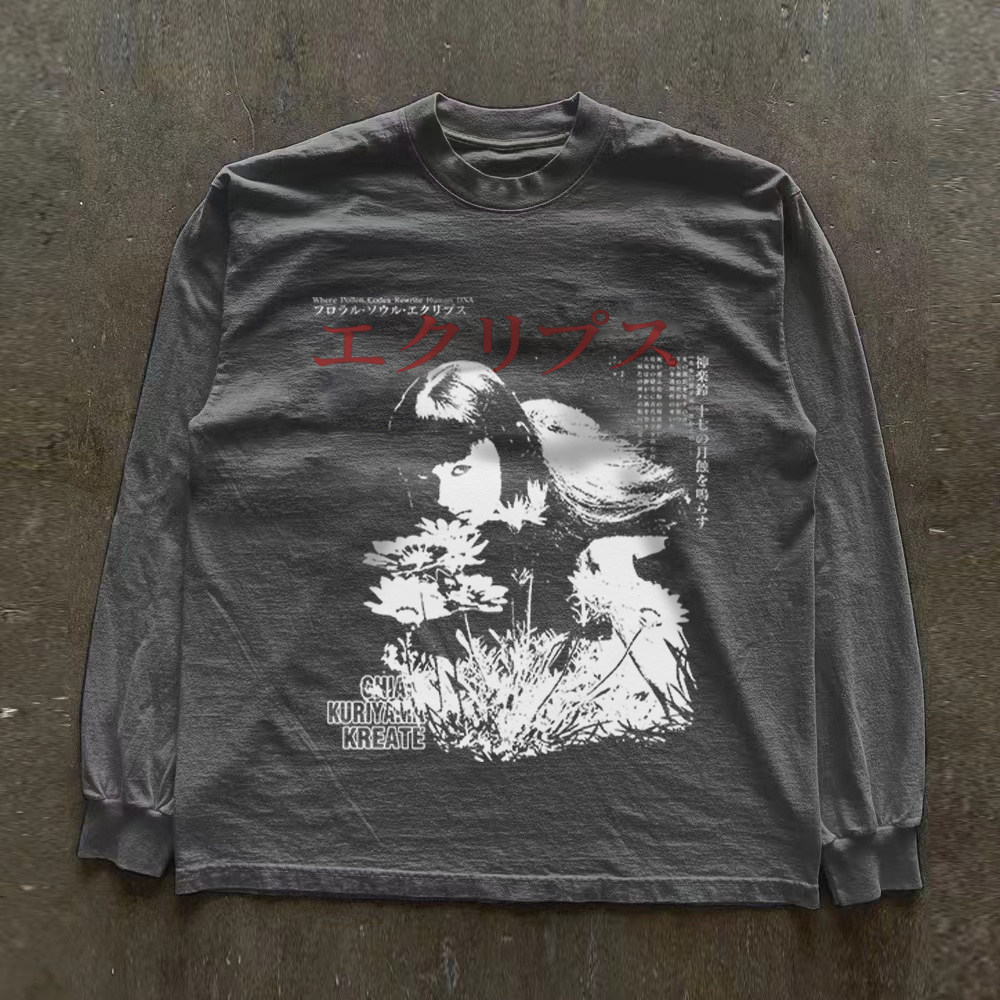 300克重磅!高级感休闲复古T恤上衣新款圆领显瘦印花百搭小众长袖